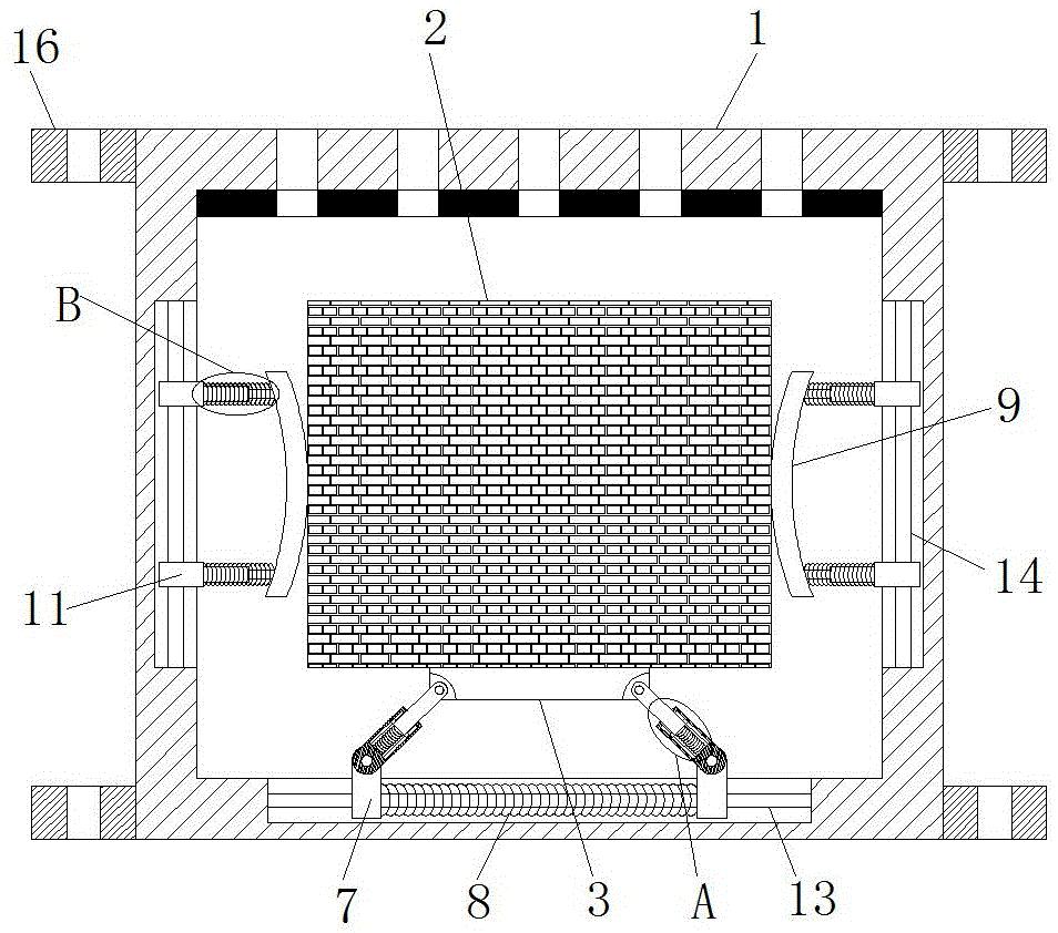 本实用新型公开了一种儿童机器人用的语音识别装置,包括壳体和壳体内部的语音识别主体,语音识别主体的底部固定设有支撑板,支撑板的两端均通过第一轴销转动连接有连接杆,两个连接杆的外部活动套设有套筒,连接杆位于套筒内部的一端固定设有第一弹簧,两个套筒的下端均通过第二轴销转动连接有第一滑块,壳体的内部下侧壁开设有与第一滑块相匹配的第一滑槽,且两个第一滑块之间共同固定连接有第二弹簧,语音识别主体的左右两个侧壁均固定连接有弹性杆。本实用新型能够有效的对语音识别主体进行多方位的减震缓冲,避免儿童机器人摔倒时对语音识别主体造成损坏,延长语音识别装置的使用寿命。