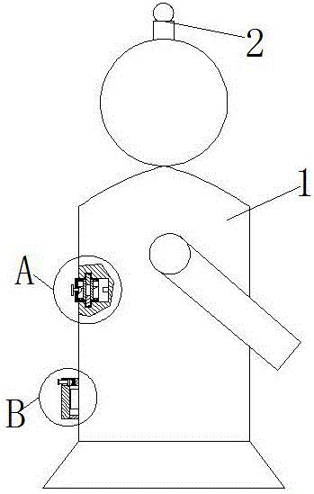 本实用新型公开了一种带小夜灯的儿童教育机器人,包括机器人本体,机器人本体内部设有电源,机器人本体的上端固定连接有夜灯,机器人本体左侧的侧壁开设有充电槽,充电槽内滑动连接有挡板,挡板右侧的侧壁开设有安装槽,安装槽相对一侧的槽壁之间通过轴承转动连接有同一个螺纹筒,螺纹筒内螺纹连接有两个螺纹杆,两个螺纹杆上的螺纹反向设置,安装槽的相对一侧的槽壁对称开设有两个第一通孔,充电槽的槽壁开设有与第一通孔相对应插槽,螺纹杆穿过第一通孔插入插槽中。本实用新型对挡板进行有效的固定,避免挡板脱落,可以有效的保护充电口,还避免了儿童频繁按动开关而导致机器人使用寿命降低的问题。