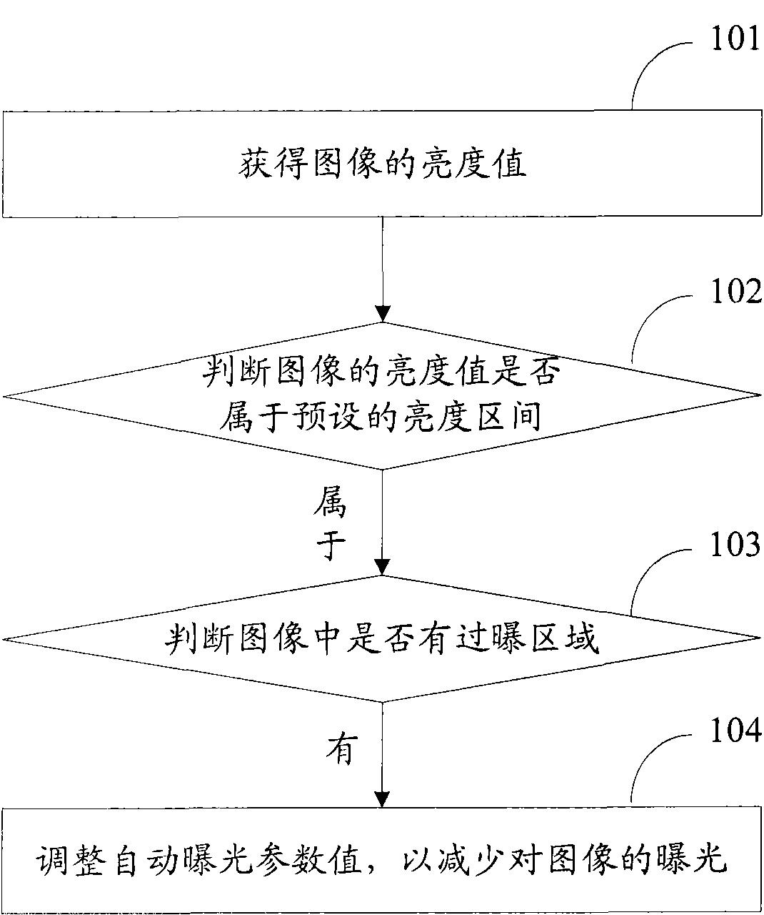 本发明公开了自动曝光的方法,用于实现对图像的自动曝光,以提高图像的显示效果。所述方法包括:判断图像的亮度值是否属于预设的亮度区间;在图像的亮度值属于亮度区间时,判断图像中是否有过曝区域;在有过曝区域时,调整自动曝光参数值,以减少对图像的曝光。本发明还公开了用于实现所述方法的装置。