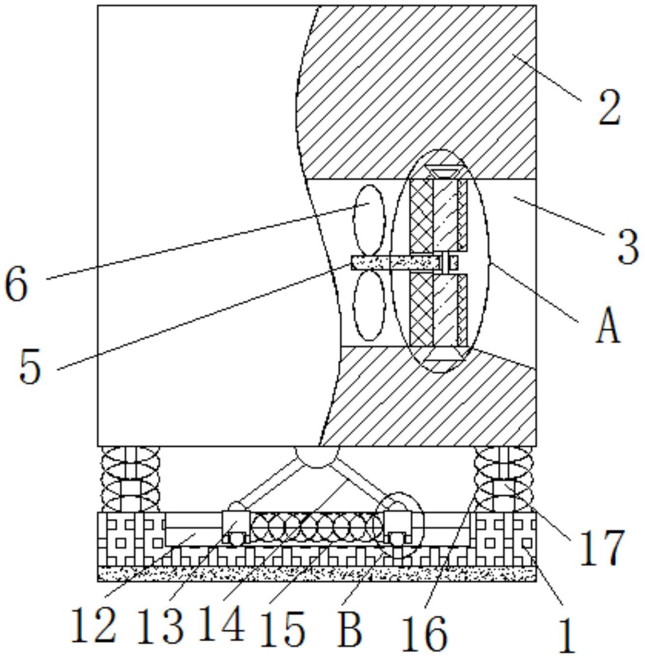 本实用新型涉及冷热交换器技术领域,且公开了一种冷热交换器,包括基座和位于基座正上方的交换器主体,交换器主体上开设有进气孔,基座和交换器主体之间通过缓冲机构连接,进气孔内固定连接有滤网,滤网的中部通过第一轴承转动连接有转杆,且第一轴承固定设在滤网内,转杆远离进气孔孔口的一端贯穿滤网并向外延伸,且对称固定连接有扇叶,转杆的另一端贯穿滤网并向外延伸,且通过第二轴承转动连接有转轴,第二轴承固定设在转杆内,转轴的一端固定连接有锥齿轮,进气孔的孔壁上开设有与锥齿轮相匹配且剖面为环形的齿槽。本实用新型保证清理刷清理效果的同时,降低交换器工作带来的噪声。