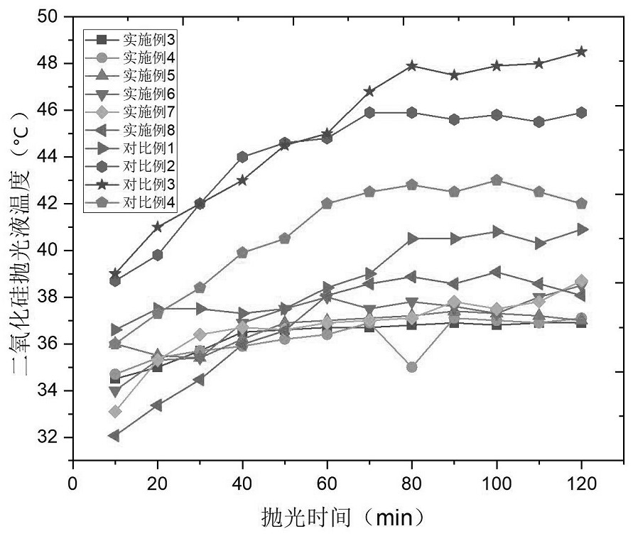 本发明提出了一种二氧化硅抛光液及其制备方法,用以解决现有的二氧化硅抛光液在抛光蓝宝石片的过程中存在的抛光温度升温过快和抛光去除率低的技术问题。本发明选用两种粒径的二氧化硅胶体复配,离子交换法制备胶体硬度低于同粒度硅粉水解法胶体,大粒径胶体抛光,小粒径胶体修复蓝宝石表面和降低粗糙度;小粒径胶体吸附在蓝宝石片的表面与其发生化学反应软化表面,大粒径胶体将软化的表面去除,提高对蓝宝石片的抛光速率,且非球形颗粒与蓝宝石片的接触面积更大,更易与蓝宝石片发生化学作用;小粒径胶体在抛光液中的运动能力要比大粒径胶体强,防止反应产物的聚集引起团聚,防止抛光温度升温过快,且选用的纤维素保湿剂能够抑制抛光液结晶。