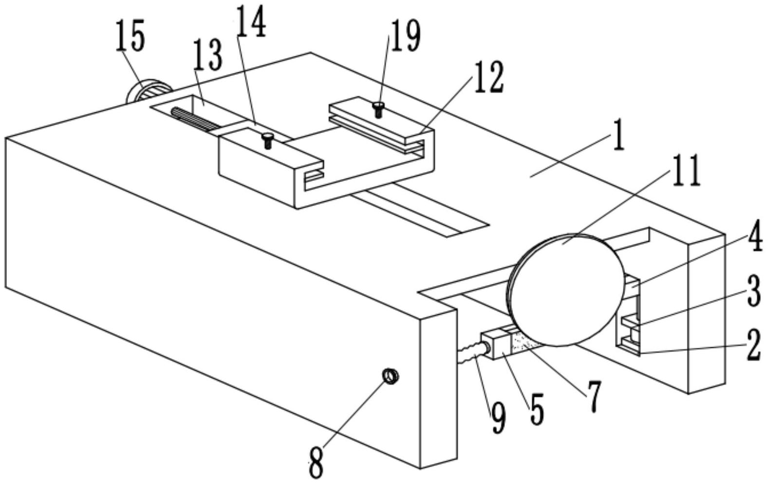 本实用新型公开了一种鹰嘴钳加工用原料切割装置,包括切割台,切割台一侧的内壁上开设置有安装槽,且安装槽底部的内壁上通过螺栓固定有液压缸,液压缸的输出端上通过螺栓固定有升降座,升降座底部的外壁上通过螺栓固定有水盒,且水盒一侧的外壁上开设有透水槽,水盒一侧的外壁上设置有海绵,切割台一侧的外壁上通过螺栓固定有进水管。本实用新型通过进水管和软管能够将冷水通入到水盒的内部,海绵能够将冷水吸附,切盘与海绵接触时,能够对切盘进行降温处理,避免切盘温度过高损坏,延长了切盘的使用寿命,液压缸能够带动升降座升降,进而能够带动第一电机和切盘升降,第一电机可以带动切盘转动对原材料进行切割,更加的自动化,使用非常方便。