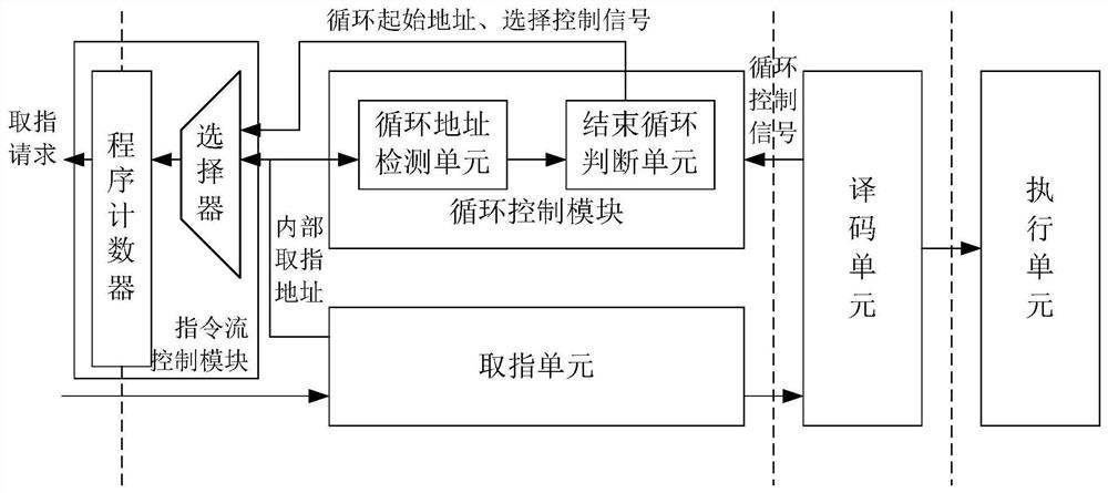 本发明提供一种实现零开销循环的处理器,所述处理器包括指令流控制模块和循环控制模块,其中,所述循环控制模块包括循环地址检测单元和结束循环判断单元。本发明通过指令与硬件相结合的方式消除每次循环所需要的额外控制指令,能够实现零开销的循环加速,以提高循环的执行效率。
