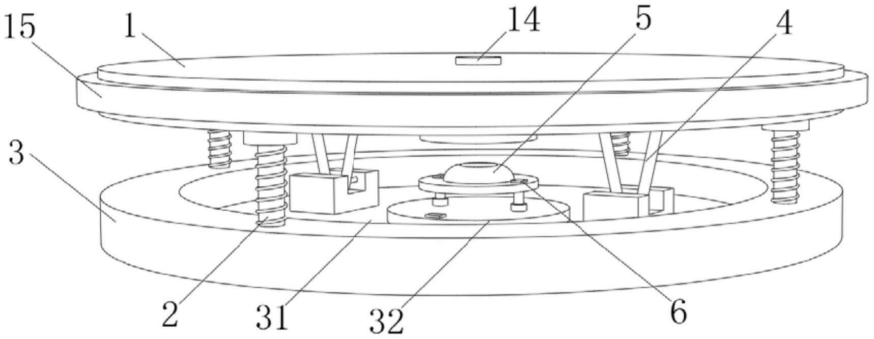 本实用新型公开了一种新能源汽车轮毂防护机构,包括盖板,盖板的底部通过伸缩组件与安装座固定连接,盖板的底部对称开设有滑槽,滑槽内部设有缓冲机构,盖板的下表面固定连接有压板,安装座的顶部开设有凹槽,凹槽的顶部设有安装板。本实用新型有益效果:通过设有的伸缩组件、滑槽、滑块、弹簧、活动杆和固定块,能够使得盖板和安装座发生相对的移动,对外部压力起到缓冲作用,避免了较大碰撞的发生,通过设有的压板、安装板与压力玩具垫或者压力感应器和控制器之间的配合,能够对驾驶员起到及时警报提醒的作用,从而避免轮毂受到损伤。
