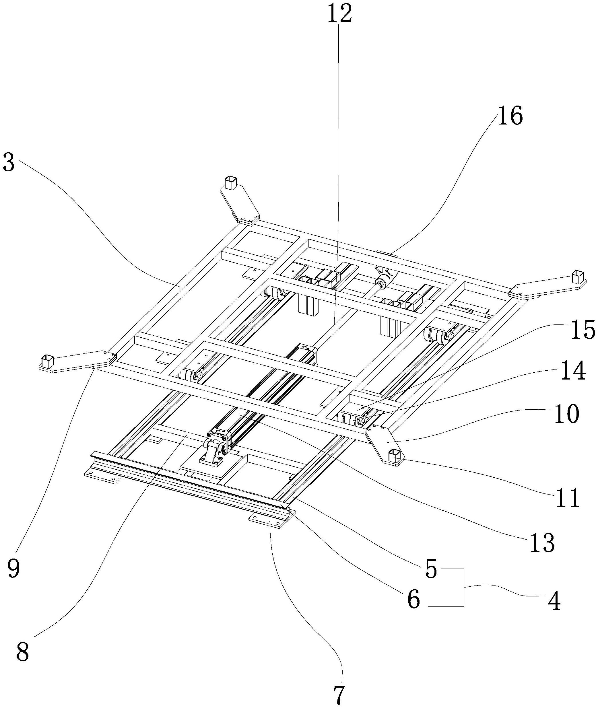 本实用新型提供了一种二位移动装置,属于移动搬运机械技术领域。它解决了现有四轴机器人不满足搬运需求的问题。本二位移动装置,包括供轮胎放置的放置架以及用于抓取轮胎的机器人主体,还包括供放置架安装且用于驱动放置架轴向来回移动的移动装配组件,移动装配组件由安装单元和移动单元组成。本实用新型具有使四轴机器人能满足搬运需求且降低搬运成本的优点。