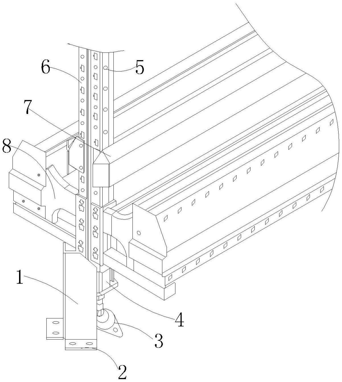 本实用新型公开了一种穿梭货架导向机构,包括货架主体和安装在货架主体中间位置处的若干立柱,若干所述立柱的同侧之间通过装配机构安装有导向板,所述导向板的侧边共同构成导向机构,导向机构用于对取货设备位移的引导。本实用新型通过设置有一系列的结构,使得该穿梭货架导向机构,可在货架系统使用的情况下,对穿梭在货架之间的穿梭车等设备的运动进行限位引导,具有左右和上方三个方位的限位效果,便于提高穿梭车的运动精度,进而提高装卸货物的精度,利于实际使用。