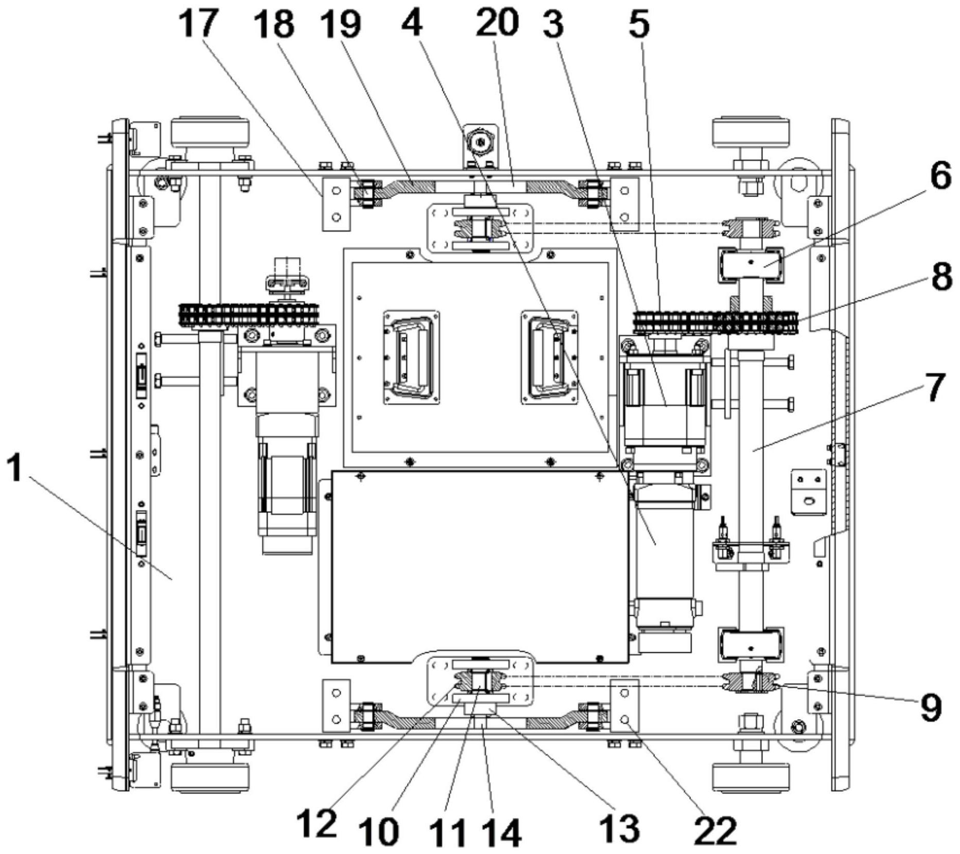 本发明公开了一种穿梭车顶升机构,包括穿梭车本体,穿梭车本体安装有减速机、伺服电机、顶升主动链轮,穿梭车本体装有与减速机输出轴同向的顶升主轴,顶升主轴装有第一顶升从动链轮、第二顶升从动链轮,穿梭车本体架有与两个第二顶升从动链轮对应的顶升链轮,顶升链轮轴装有偏心轮、升降拨杆、滚轮外圈,偏心轮两侧均安装有顶升底座、升降座,两个升降座通过销轴连接有拉杆,拉杆中部开设有将滚轮外圈卡在内的限位槽。通过带动升降拨杆转动经滚轮外圈带动拉杆升起,从而带动四角的升降座在顶升底座的限位下同步升起进行顶升,升降稳定,且通过该顶升机构整体位于穿梭车本体边缘的设计,使得不影响穿梭车本体内其他设备的安装。