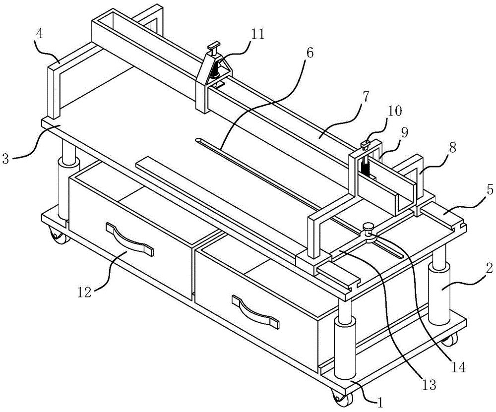 本实用新型公开了一种用于组合雨刮连接的设备,涉及雨刮器技术领域。本实用新型包括底板,底板顶部固定有升降机构,升降机构顶端固定有组装台,组装台上表面固定有固定架和滑轨、开设有定位槽,固定架上固定有连接槽,滑轨上滑动连接有框架,框架顶部固定有与连接槽相配合的限位架,限位架上贯穿有夹紧机构,连接槽上滑动连接有紧固机构。本实用新型通过在组合连接雨刮时,将雨刮固定在连接槽中,不在需要员工手持安装,不仅降低了员工的劳动强度,提高工作效率,而且固定更牢固方便组合连接,保证连接时的安装质量。