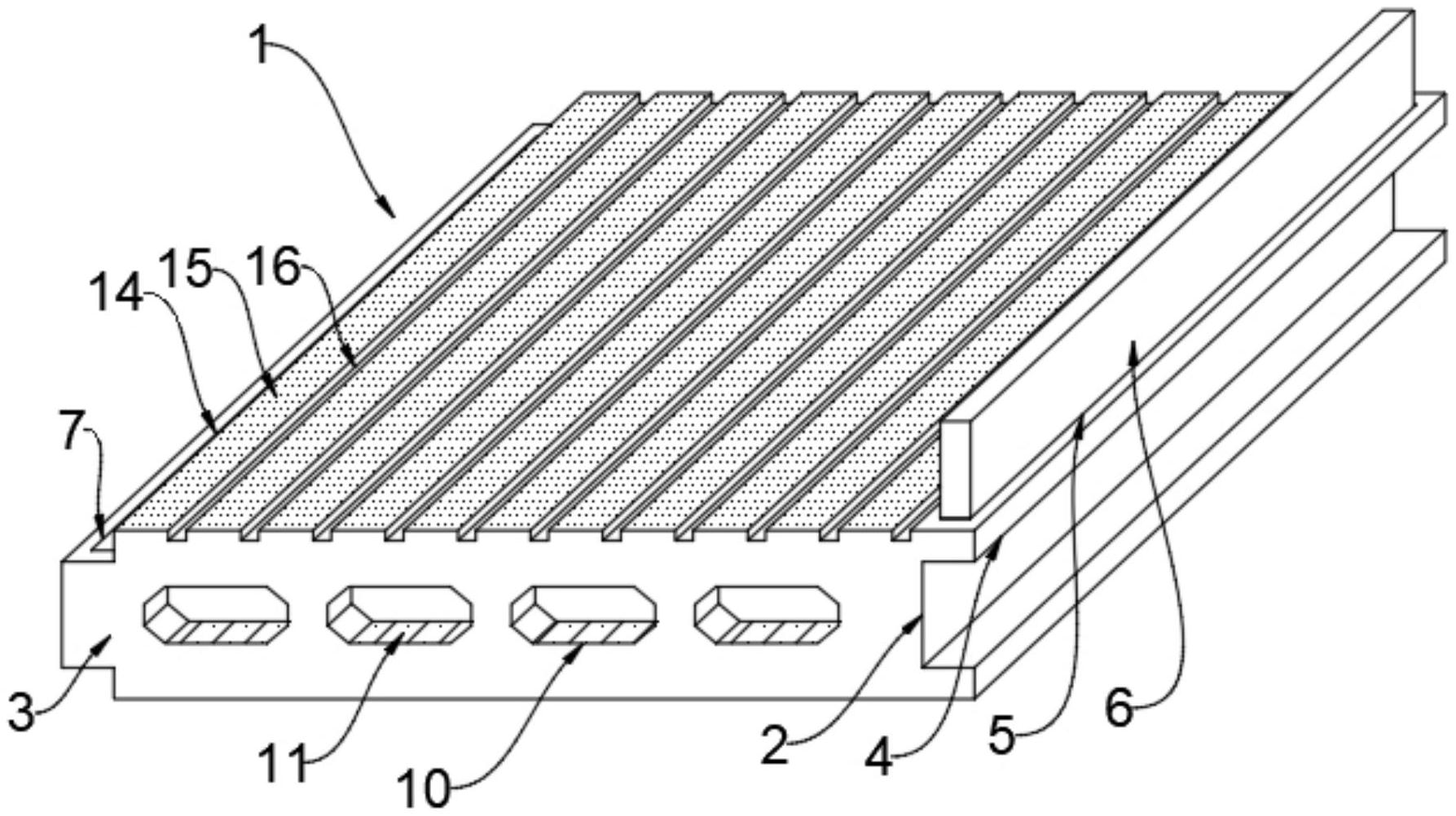 本实用新型公开了一种空心塑木地板,涉及空心塑木地板技术领域,为解决现有空心塑木地板组合安装起来较为复杂,板体之间的组合处容易脱落分离,从而影响板体组合效果的问题。所述侧组合安装凹槽,其安装在所述空心塑木地板本体的一侧,且其与所述空心塑木地板本体为一体式结构,所述侧组合安装凹槽的上下两端均设置有凹槽限位板,上端所述凹槽限位板上表面的外壁设置有限位板连通槽,所述限位板连通槽的内部设置有插接卡合板;侧组合安装凸块,其安装在所述空心塑木地板本体的另一侧,且其与所述空心塑木地板本体为一体式结构,所述侧组合安装凹槽的上下两端均设置有凹槽限位板,上端所述凹槽限位板上表面的外壁设置有限位板连通槽。