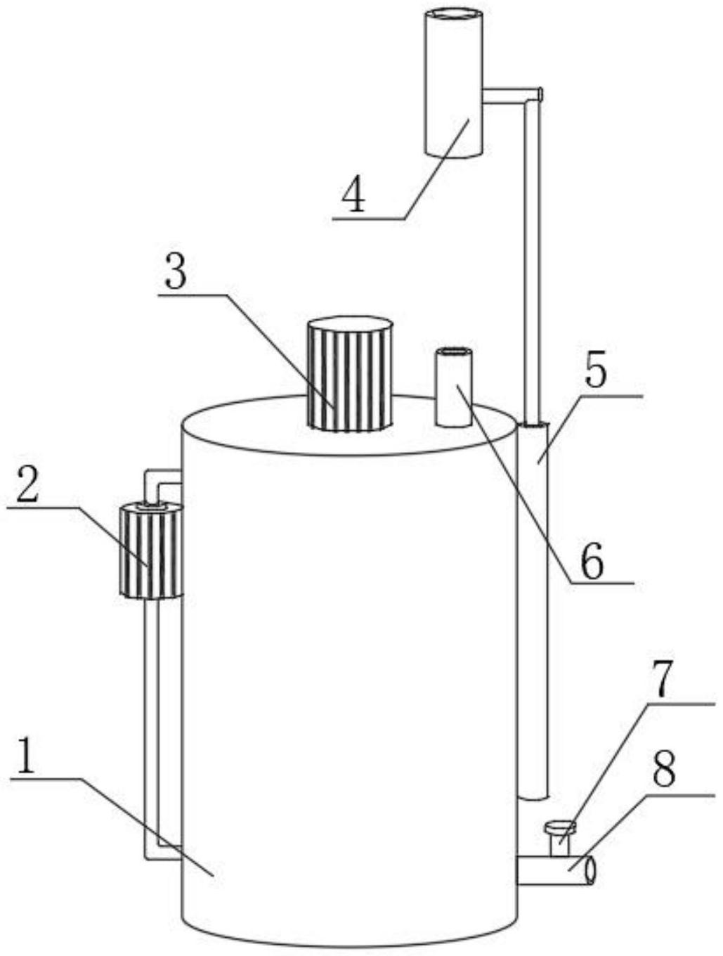 本实用新型公开了一种方便粥生产用的糖水熬制装置,包括罐体,所述罐体顶部设置有电机,且电机底部动力输出端贯穿罐体通过联轴器安装有转动杆,所述转动杆底部设置有刮板,所述罐体底部通过预留槽设置有电加热管,且罐体一侧顶部设置有输料泵,所述罐体内顶部设置有环形出料管,所述输料泵底部进料端通过管道连接罐体,且输料泵顶部出料端通过管道连接环形出料管。本实用新型一种方便粥生产用的糖水熬制装置,电机可以驱动刮板旋转,从而使得刮板刮动沉淀在罐体内底部的糖,而输料泵能够将罐体内底部的糖吸入,并通过环形出料管喷出,从而使得罐体内的糖循环流动,以便于糖水的熬制,适合被广泛推广和使用。