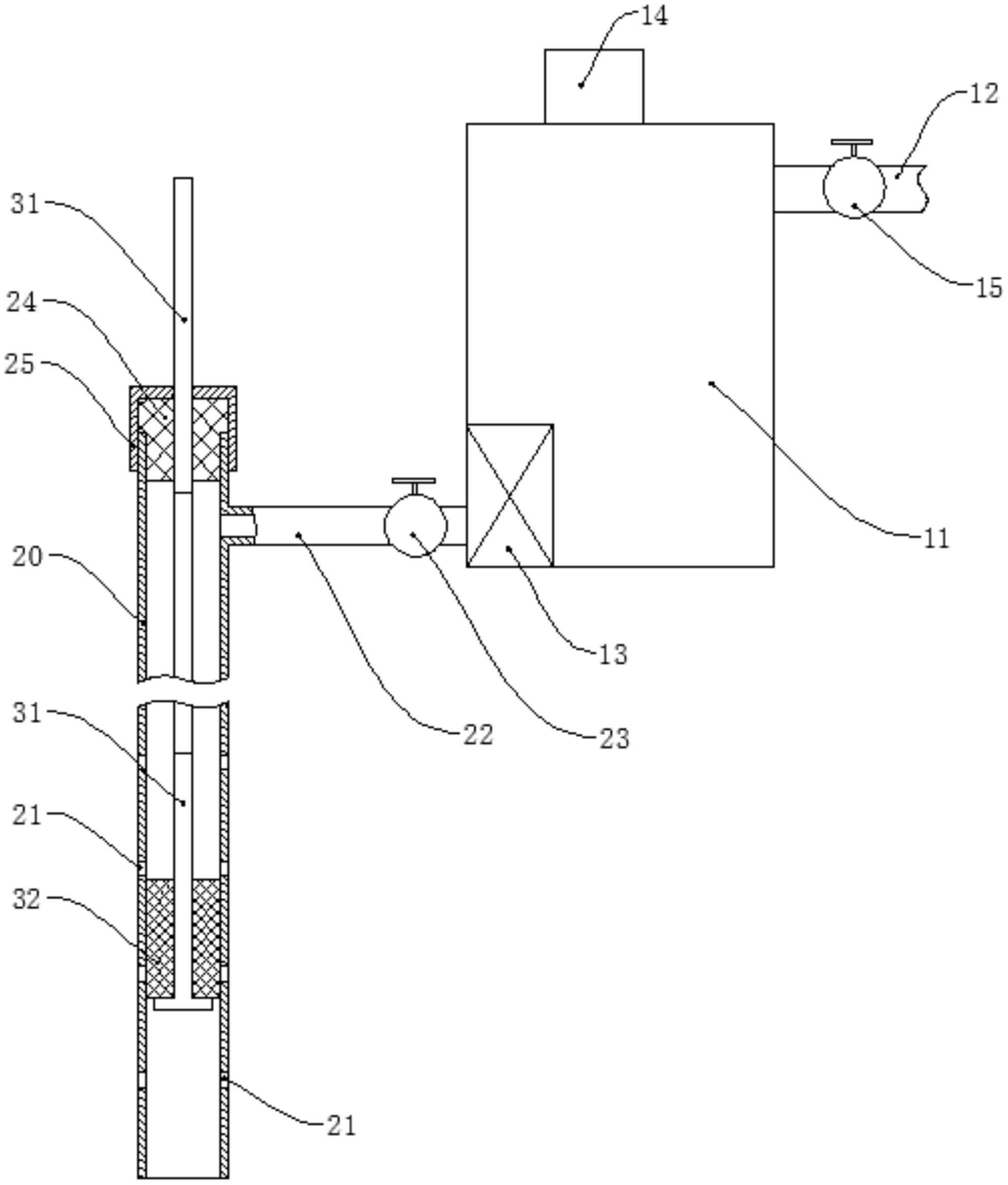 本实用新型提供了一种滨海盐碱地土壤修复系统,属于土壤修复技术领域包括储水装置、压水管和活塞导杆组件,压水管用于打设在土壤中,且侧壁沿长度方向设有若干渗水孔,压水管上部与集水池连通,以将储水装置中的水从渗水孔导入土壤中;活塞导杆组件包括导杆和设在导杆下端的活塞,活塞位于压水管中,导杆用于控制活塞在压水管中的位置。本实用新型一次建设即可长期使用,表层土壤不易出现返盐的现象,能够取得较好的土壤修复效果,而且不会影响地表区域的正常使用,同时有利于合理利用淡水资源,且维护难度和成本低。