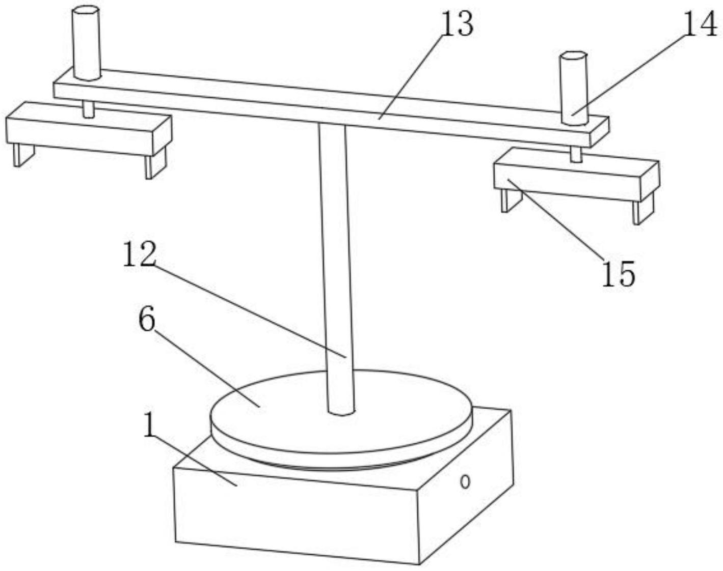 本实用新型属于粉煤灰砖生产领域,具体涉及一种蒸压粉煤灰砖生产用横向码坯装置,包括底座,所述底座上固定安装有电机,所述电机的转轴和底座转动连接,所述转轴的外侧滑动连接有连接套,所述连接套上焊接有转盘,所述转盘上焊接有筒体,所述筒体内滑动连接有插销,所述筒体内设置有弹簧,所述底座上开设有两个凹槽,两个所述凹槽对称分布在底座上,所述凹槽内滑动连接有插销。本实用新型通过设置滑板、车轮、楔形块、电动机、双螺纹丝杆、斜块等结构,通过电动机驱动双螺纹丝杆转动和斜块做螺纹运动,进而使得卸料和楔形块相对移动,进而使得车轮可以在底座内伸缩,进而使得装置便于移动的同时,可以使得装置和地面放置稳定。