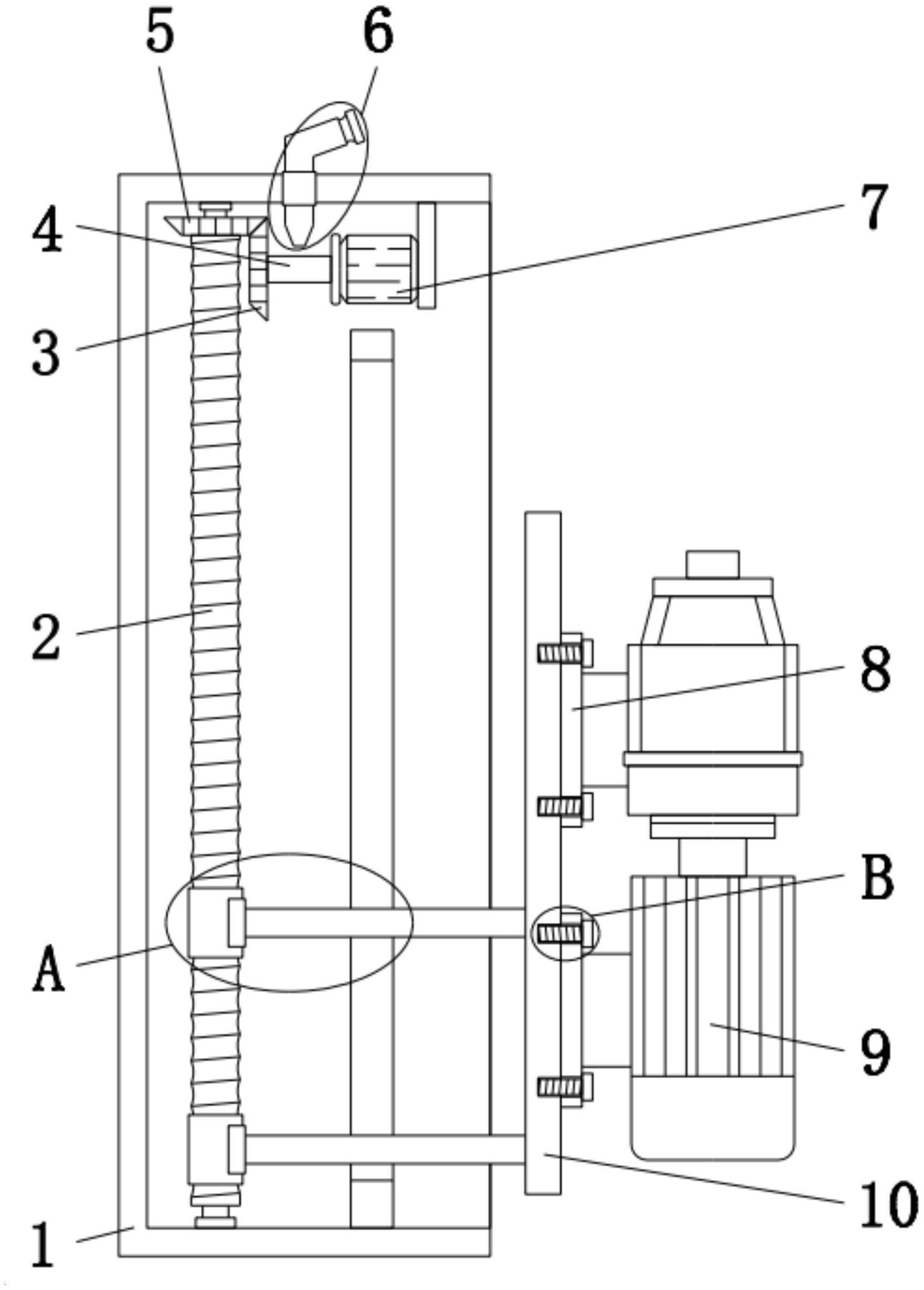 本实用新型公开了一种便于检修的鸡粪场摆线针减速机,包括机框、转轴、电机、减速机本体和承载板,机框顶部的一侧通过支板安装有电机,且电机的输出端通过联轴器安装有转轴,并且转轴远离电机的一端安装有主动锥形齿,转轴上方的机框顶部设有润滑结构,主动锥形齿远离转轴一侧的机框顶部转动连接有从动锥形齿,从动锥形齿与主动锥形齿相互啮合,且从动锥形齿底端的中心位置处固定有丝杆,丝杆的底端与机框的底部转动连接,并且丝杆一侧的机框底部安装有限位框。本实用新型不仅提高了摆线针减速机的适用范围,提高了摆线针减速机使用时的便捷性,而且确保了摆线针减速机使用时丝杆的传动效率。