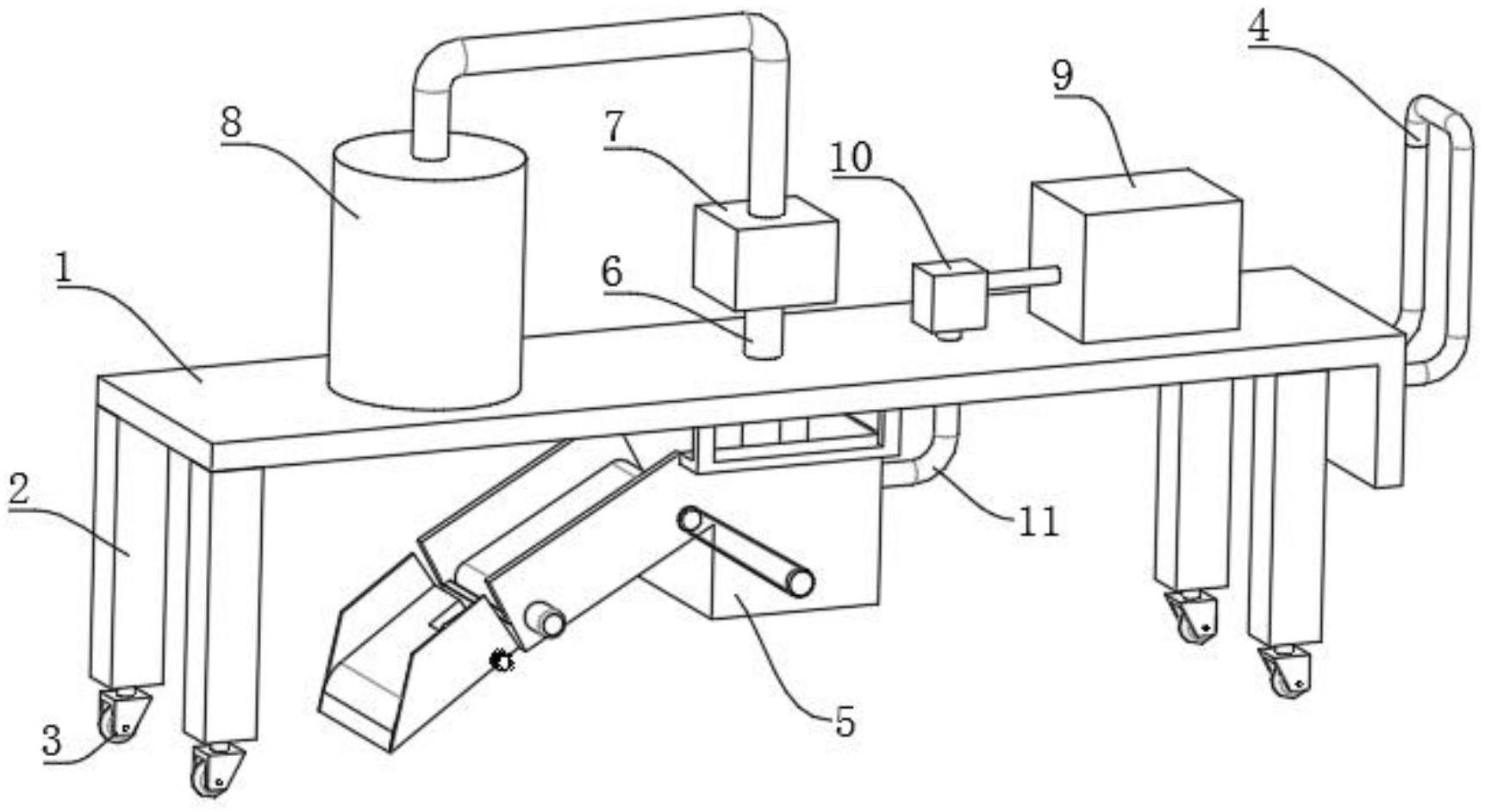 本实用新型涉及粪污清理装置技术领域,尤其是一种方便移动的粪污清理装置,包括底座,底座的底部固定安装有若干支撑柱,若干支撑柱的底端均转动安装有万向轮,底座的一端固定安装有推杆,底座的底部安装有清理机构、以对地面的粪便进行清理,底座的顶部固定安装有吸污泵,吸污泵的进口端固定安装有吸污管,吸污管位于清理机构内侧,吸污泵的出口端通过导管固定安装有储污箱,储污箱放置在底座的顶部。本实用新型的整个过程完全自动化进行,大大减少了人工劳动量。
