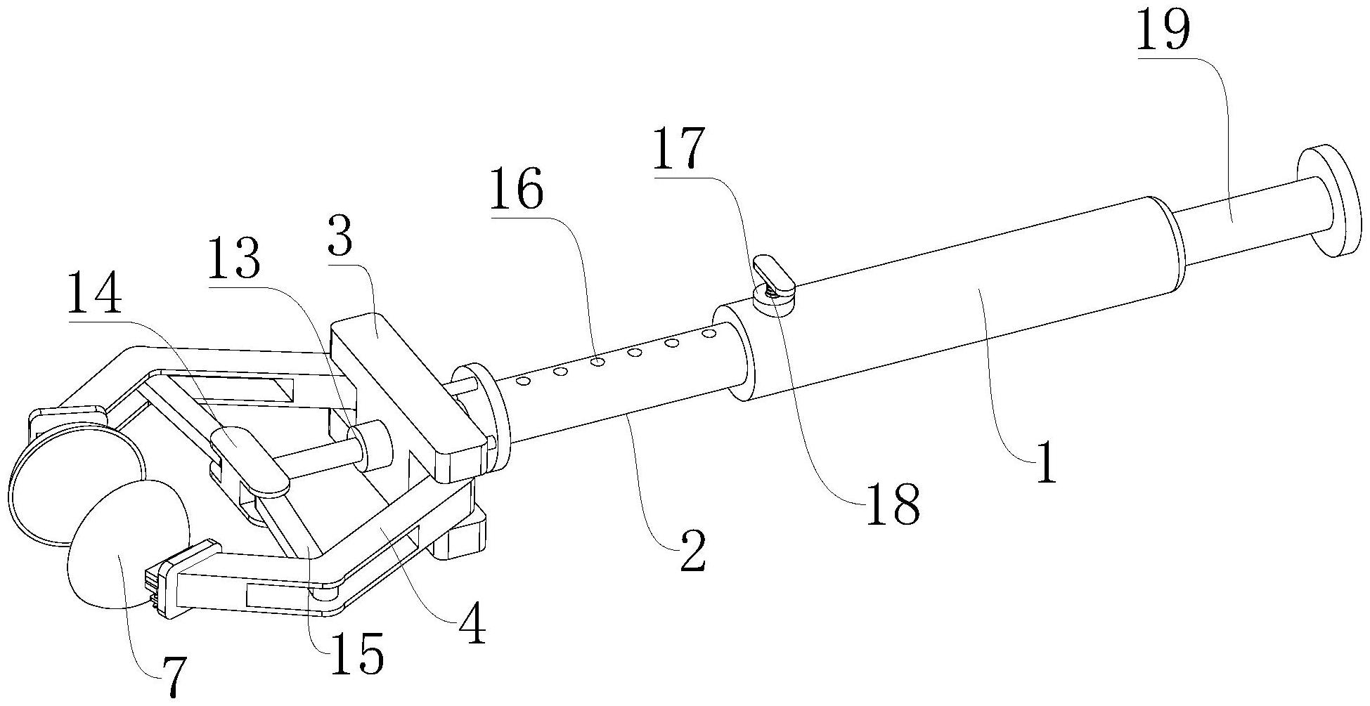 本实用新型涉及鸡蛋拾取技术领域,公开了一种蛋鸡养殖用鸡蛋拾取夹,包括连接筒,连接筒的内壁上滑动卡接有调节杆,调节杆的一端固定连接有连接板,连接板的两端分别铰接有夹持杆,夹持杆的一端固定连接有框架,框架的内部卡接有卡接板,卡接板的一端固定连接有拾取罩,框架的一侧壁上安装有支撑板,支撑板的顶部外壁上贯穿滑动卡接有滑杆,滑杆的底端与卡接板相卡接,滑杆的侧壁上固定安装有圆形板,圆形板的顶部外壁上固定连接有弹簧,弹簧的一端与支撑板固定连接,通过设置的滑杆、卡接板与框架,拉动滑杆带动圆形板压缩弹簧,使滑杆底端脱离卡接板,卡接板从框架上脱离,从而便于将拾取罩取下进行清洗。
