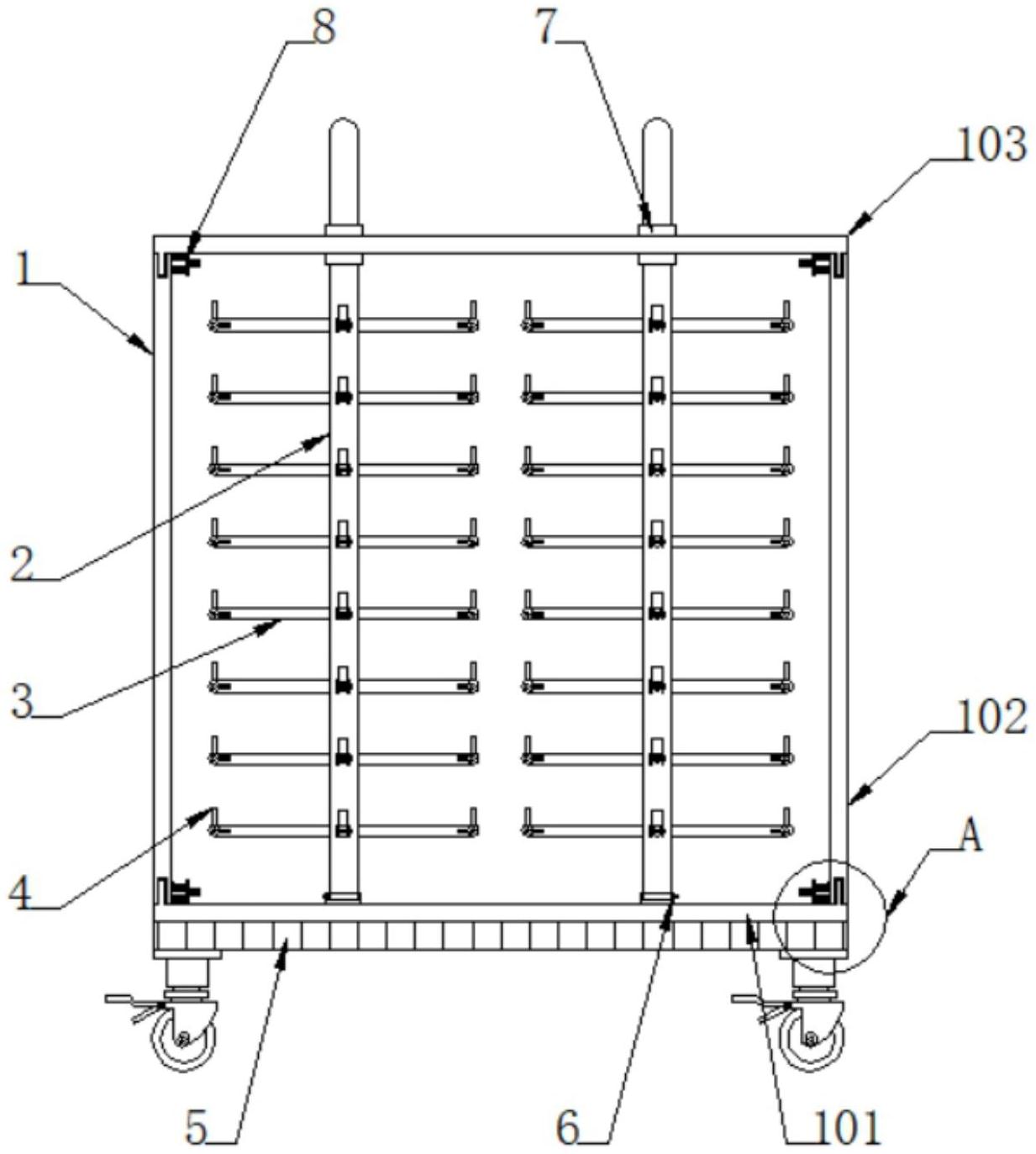本实用新型公开了一种涤纶纱生产用的通用性好的纱锭放置装置,包括转轴、安装杆和底座,所述底座的顶端安装有组合结构,所述转轴的顶端安装有固定环,所述转轴的底端安装有旋转结构。本实用新型通过在底板的顶端安装有侧板,将转轴插入底板顶端的旋转环内部后,然后将顶板卡入侧板的内部,转轴会穿过旋转环,这样就可以组合装置,然后卡扣和挡板通过安装弹簧进行连接,安装弹簧具有弹性,安装弹簧的弹性可以带动卡扣卡入侧板、底板和顶板的内部,对侧板、底板和顶板进行固定,当需要拆卸装置时,拉开卡扣就可以拆卸装置,需要使用时再进行组装,以此来达成纱锭放置装置不仅实现了纱锭放置装置便于进行组装的目的。