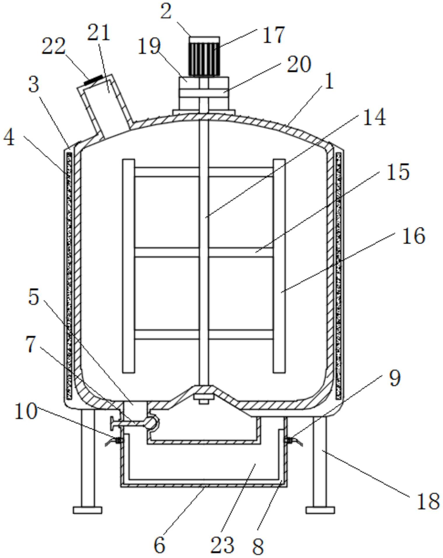 本实用新型公开了一种清洗剂生产用环保型反应釜,包括反应釜体和辅助搅拌机构,其特征在于:所述反应釜体表面设有保温隔热层,保温隔热层内设有保温泡棉层,所述反应釜体底部经液体通道出口设有液体冷却装置,液体通道出口上设有开关阀门,液体冷却装置包括液体容纳空间,液体容纳空间外表面设有冷却腔,液体冷却装置上设有进气孔和出气孔,进气孔和出气孔分别与冷却腔相连接,进气孔和出气孔上均设有导流装置,所述导流装置包括气体接口,气体接口一侧设有引流管;本实用新型可对反应釜体进行隔热保温的效果,防止在生产的过程中热量散失,导致反应时间较长,浪费资源。
