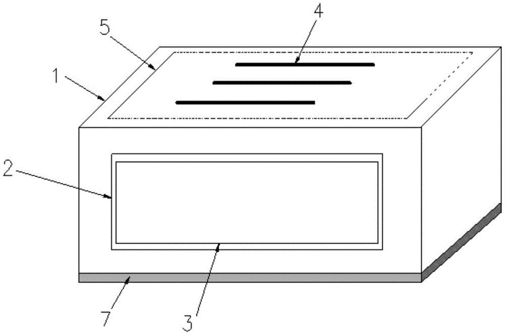本实用新型公开了一种防潮式开关电源,包括长方体外壳体,长方体外壳体内部为中空结构,长方体外壳体内腔安装有开关电源本体,长方体外壳体前端面和后端面分别开有窗口,窗口内固定安装有散热板,长方体外壳体上端面开有条形散热槽,条形散热槽内侧安装有透气网,透气网下端面设置吸潮层,长方体外壳体底端面粘贴有防潮膜,本实用新型结构设计新颖,散热性能佳,此外,还具有优异的防潮性能,有效的防止外部湿气进入外壳体内部影响开关电源的使用性能。
