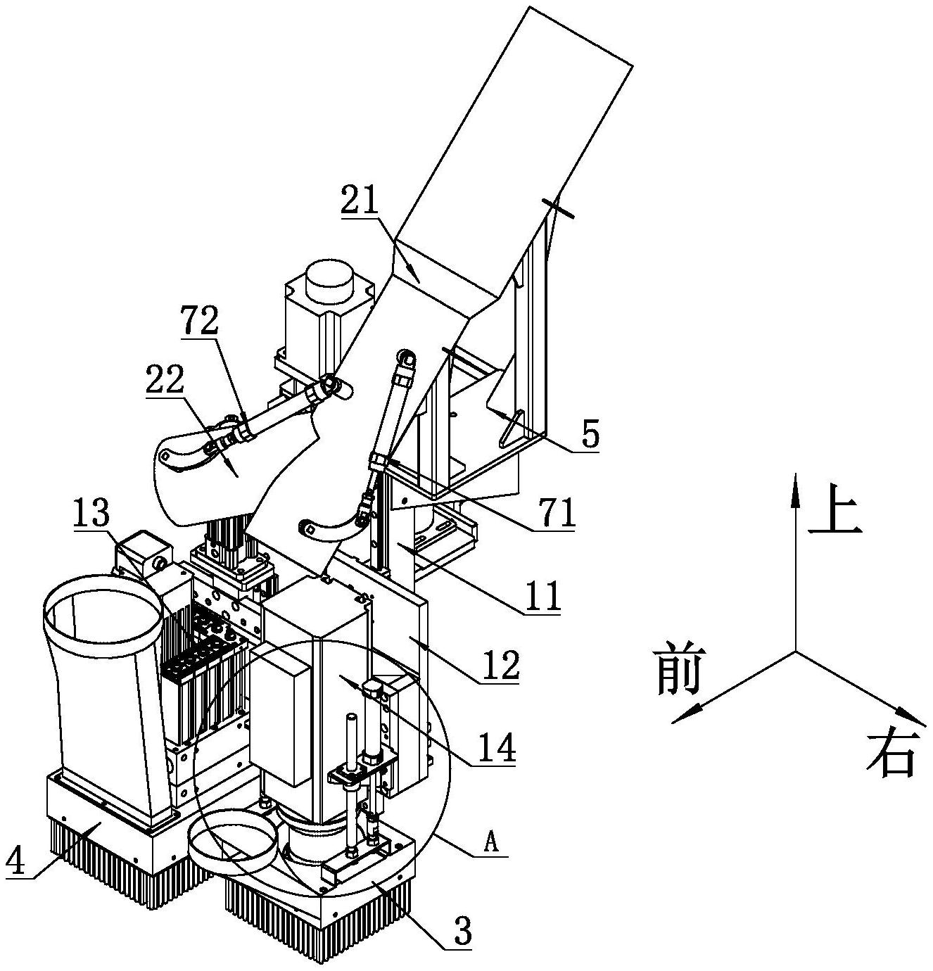 本实用新型公开了一种应用于板材开料设备的吸尘总成,涉及板式家具加工设备技术领域。该吸尘总成包括倾斜设置的第一吸尘管,板材开料设备的主轴的下端设置有第一吸尘罩。所述的第一吸尘罩包括开口朝向下方的第一罩体,所述的第一罩体上设置有用于容纳所述主轴下端的第一避让孔。所述的第一罩体通过软管与所述的第一吸尘管的下端相连接,所述第一吸尘管的上端通过管道与风机相连。该吸尘总成的吸尘口能够对主轴和排钻所产生的粉尘进行准确的定向吸尘,吸尘效果好。