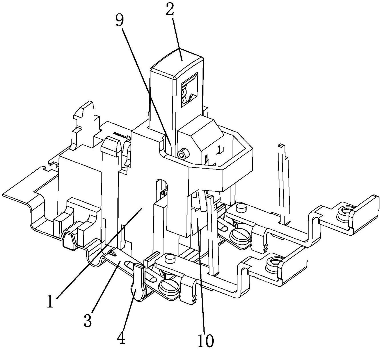 本实用新型公开了一种漏电保护机构,包括有滑座和复位按钮,滑座上设有线路板和复位弹性件,滑座上设有带动复位弹性件活动端动作的横担,横担上设有横担通孔,滑座上设有与线路板连接的脱扣线圈,在脱扣线圈内设有静衔铁和一端穿过横担通孔伸出的动衔铁,动衔铁与滑座之间设有顶出弹簧,滑座上设有由复位按钮按压的滑动件,滑动件下端设有在按压滑动件时推动动衔铁向后运动的斜推面,滑动件上铰接有位于横担前端且被动衔铁顶压的回位杆,回位杆与滑动件之间设有使回位杆向后转动的回位杆弹簧,回位杆上设有在按压滑动件后与横担通孔上侧扣接的卡块,滑动件与滑座之间设有复位弹簧,简化了整体结构,能更精确地快速实现脱扣断电的功能。