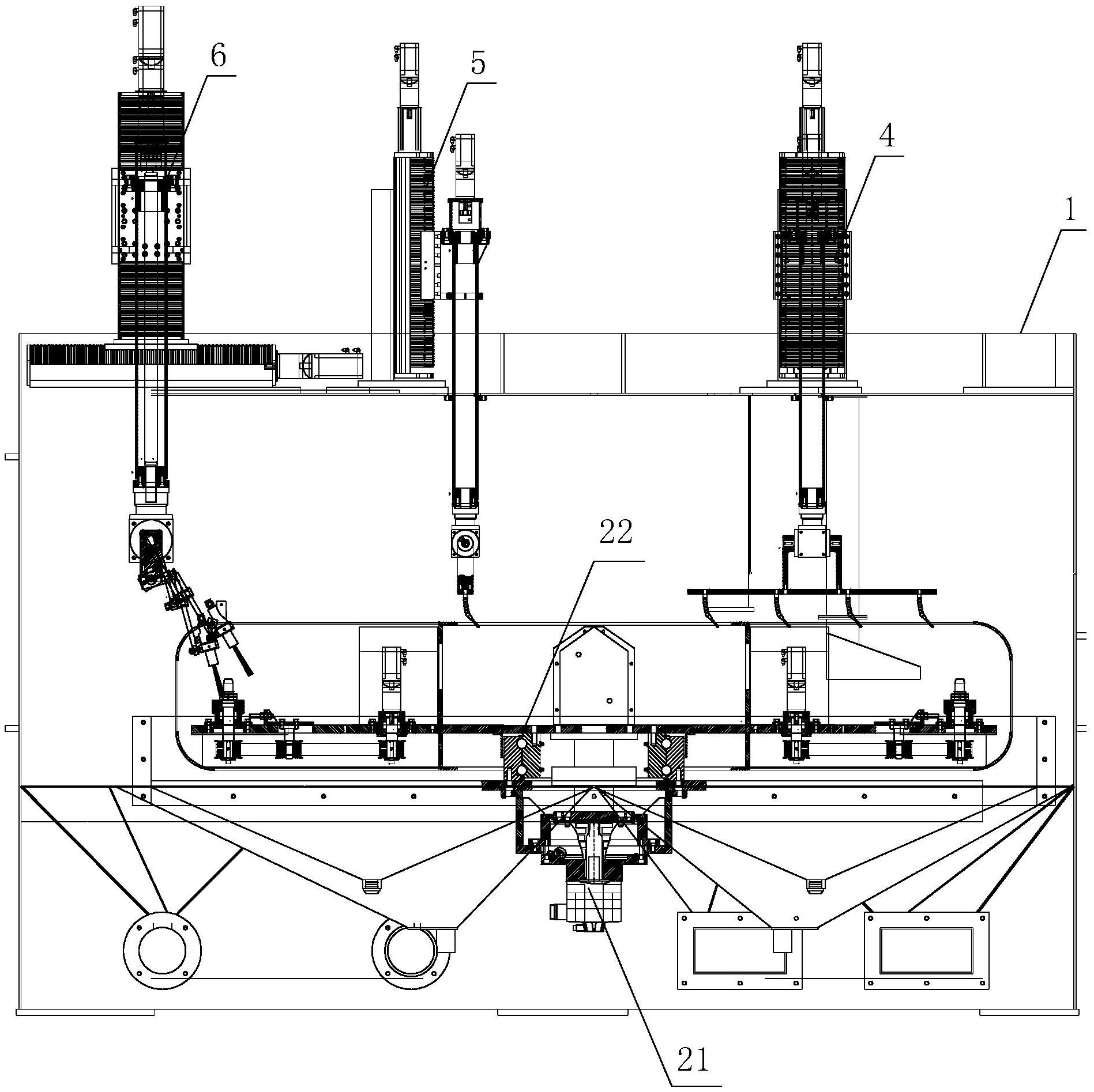 本实用新型公开了一种旋转式喷砂机。所述旋转式喷砂机包括机架、旋转电机、转动盘、自转机构、喷砂机构、砂料吹净机构、粉尘吹净机构和高压清洁,所述旋转电机、喷砂机构、砂料吹净机构、粉尘吹净机构和高压清洁机构均设在机架上,所述机架上对应设有上料工位、下料工位、喷砂工位、砂料吹净工位、粉尘吹净工位和高压清洁工位,所述转动盘设在旋转电机的输出轴上,所述转动盘上设有多个工作区,每一工作区对应设有自转机构。本实用新型旋转式喷砂机自动喷砂并清理,效率高。