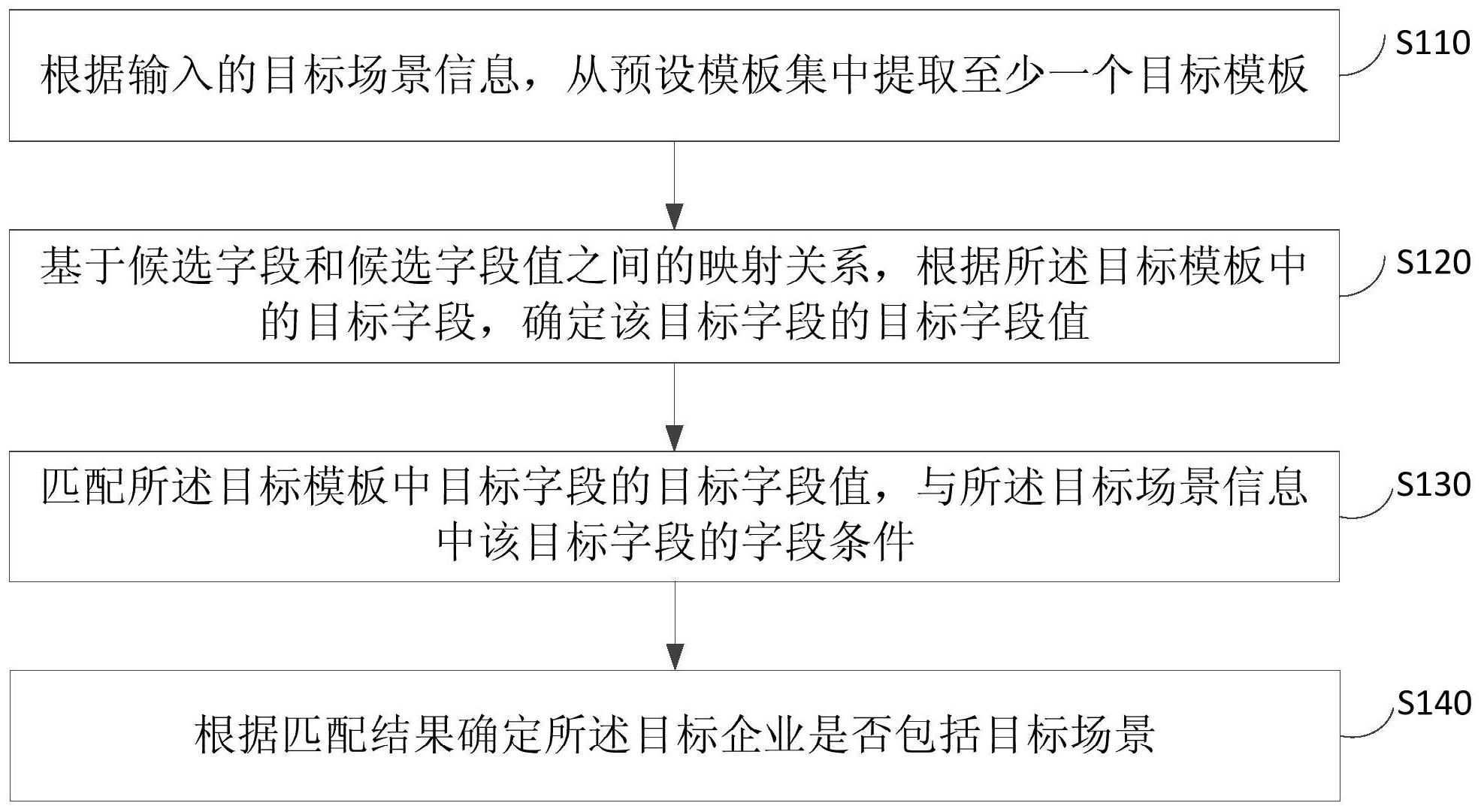 本发明实施例公开了一种场景检测方法、装置、设备和介质,涉及数据处理技术领域。该方法包括:根据输入的目标场景信息,从预设模板集中提取至少一个目标模板;基于候选字段和候选字段值之间的映射关系,根据所述目标模板中的目标字段,确定该目标字段的目标字段值,其中所述候选字段值从目标企业的目标原始数据中提取得到;匹配所述目标模板中目标字段的目标字段值,与所述目标场景信息中该目标字段的字段条件;根据匹配结果确定所述目标企业是否包括目标场景。本发明实施例提供了一种场景检测方法、装置、设备和介质,实现了利用积累的企业数据,对企业进行隐含场景的检测。