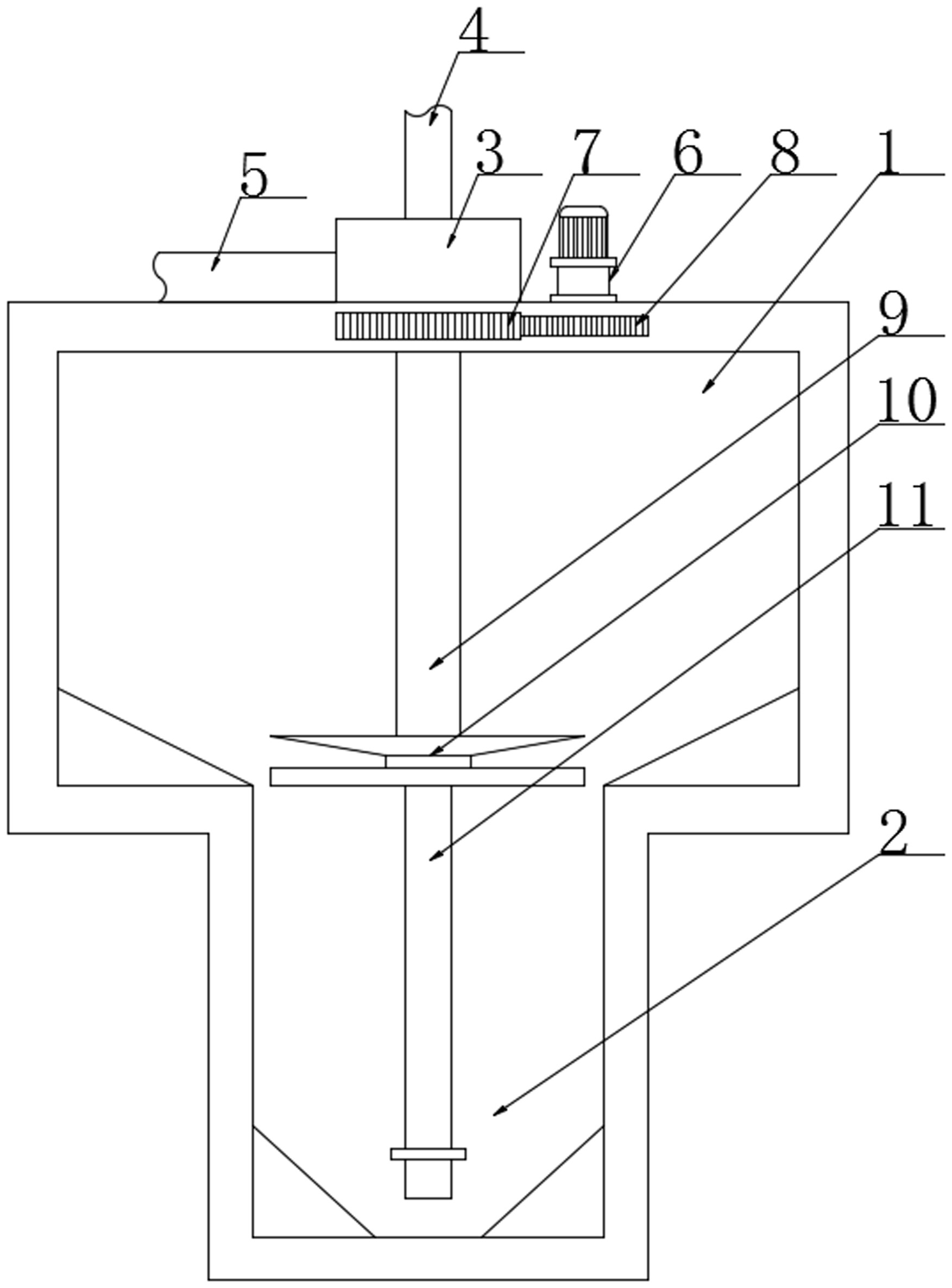 本实用新型实施例公开了一种旋流沉淀池,具体涉及沉淀池领域,包括分选池,所述分选池的底端设置有沉淀池,所述分选池与沉淀池相连通,所述分选池的顶端固定安装有收集箱,本实用新型通过设置第一输送管、第二输送管和挡片,在使用时,通过第一输送管进行输送,第一输送管一端设置有筛片,会将颗粒较大的沉淀物滞留在收集箱内,当第一输送管输送完毕后,关闭第一输送管一端的气泵,这时内管会受重力的影响,回到原位,这时启动第二输送管的气泵,同时将挡片一侧的固定钮拉出,挡片会气压的影响会绕着铰链向内移动,从而将第二输送管的一端打开,将收集箱内剩余颗粒较大的沉淀物抽走,从而颗粒物的大小进行筛分,较为方便。