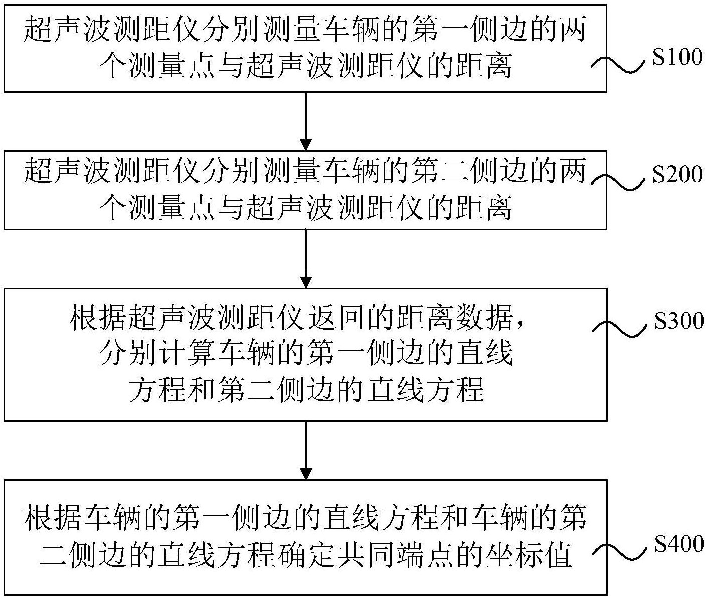 本发明提供了一种超声波车辆位姿检测方法及系统,于停车位的一侧设置有一超声波测距仪和驱动所述超声波测距仪旋转的驱动电机;所述方法包括如下步骤:超声波测距仪分别测量车辆的第一侧边的两个测量点与超声波测距仪的距离;超声波测距仪分别测量车辆的第二侧边的两个测量点与超声波测距仪的距离,车辆的第一侧边与第二侧边具有一共同端点;根据超声波测距仪返回的距离数据,分别计算车辆的第一侧边的直线方程和第二侧边的直线方程;根据车辆的第一侧边的直线方程和车辆的第二侧边的直线方程确定共同端点的坐标值。本发明通过超声波测距仪对停车位中车辆位姿进行检测,检测过程方便快捷,可以为自动充电设备或位姿调整机构提供数据依据。