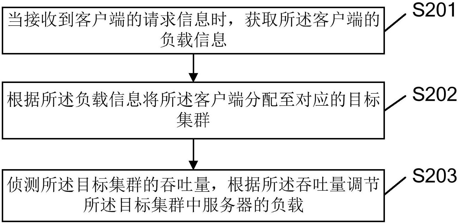 本发明实施例公开了一种负载均衡方法以及系统,所述负载均衡方法包括:当接收到客户端的请求信息时,获取所述客户端的负载信息;根据所述负载信息将所述客户端分配至对应的目标集群;侦测所述目标集群的吞吐量,根据所述吞吐量调节所述目标集群中服务器的负载。本发明实施例能够根据客户端的具体情况充分利用集群资源,提升集群资源利用率,提高整体吞吐量,降低运维成本。