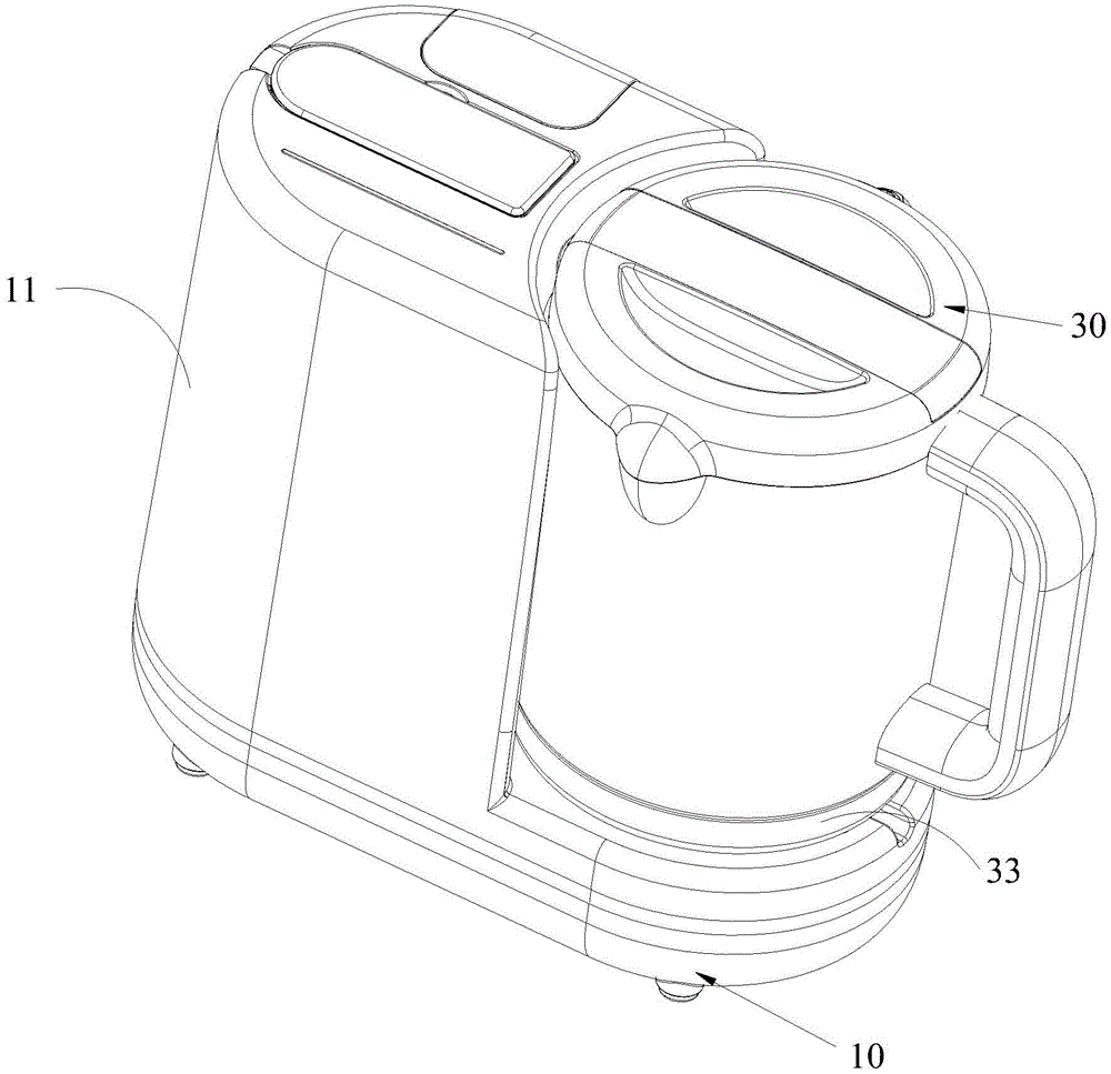 本实用新型涉及辅食领域,公开了辅食机,包括底座、水箱以及玻璃杯体;水箱具有装水的内腔,玻璃杯体具有用于放置物品的置物腔,玻璃杯体由玻璃制成,易清洁,无异味;水箱通过蒸汽通道与玻璃杯体连通;在水箱的底部设有加热装置;当用户使用辅食机烹煮食物时,将食物放入玻璃杯体内,在水箱内加入水,通过加热装置对水箱加热,将水箱内的水加热成水蒸气,而后,水蒸气通过蒸汽管道进入玻璃杯体内,对玻璃杯体内的食物进行烹煮;玻璃材质比较稳定,在加热情况下不会产生有害物质,也不会影响杯内的食物的味道,且耐磨损,易清洗,健康卫生。