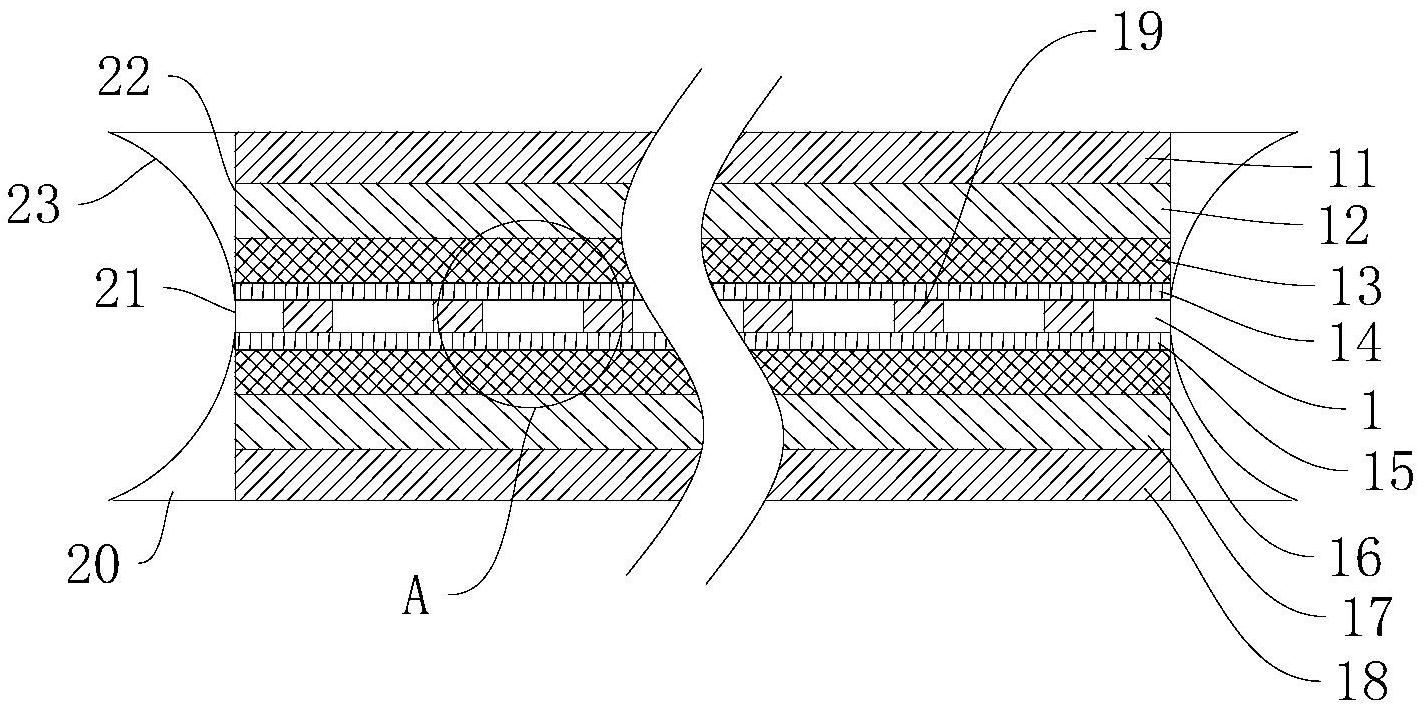 本实用新型涉及电路板技术领域,提供了一种高导热的陶瓷基复合印制电路板,包括电路基板,电路基板包括上陶瓷基体和下陶瓷基体;上陶瓷基体的上表面通过第一高导热硅胶片连接有第一阻燃覆铜箔酚醛纸;上陶瓷基体的下表面粘贴有第一导热层;下陶瓷基体的下表面通过第二高导热硅胶片连接有第二阻燃覆铜箔酚醛纸;下陶瓷基体的上表面粘贴有第二导热层;第一导热层和第二导热层之间设有导热连接件;本实用新型主要适用于双面PCB板,提高其散热性能。