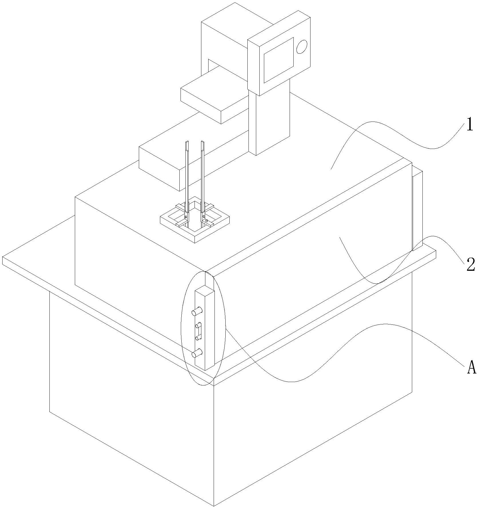 本实用新型公开了一种用于生产PVC电气胶带的装盒机,包括装盒机本体,所述装盒机本体前侧的顶部设置有挡板,所述挡板的左侧和右侧均设置有固定杆,所述固定杆的顶部和底部均开设有定位槽,所述定位槽的内腔设置有固定机构,所述挡板靠近定位槽的一侧开设有与固定机构配合使用的固定槽,所述固定杆远离挡板的一侧开设有限位槽。通过设置装盒机本体、挡板、固定杆、定位槽、固定机构、固定槽、限位槽、定位板、限位机构、第一通孔、第二通孔、第三通孔和第四通孔的配合使用,解决了现有包装机不便于进行维修,在拆卸的过程中会浪费使用者大量的时间和精力,降低了使用者的工作效率,影响了使用者对装盒机使用的问题。适用于PVC电气胶带的生产。