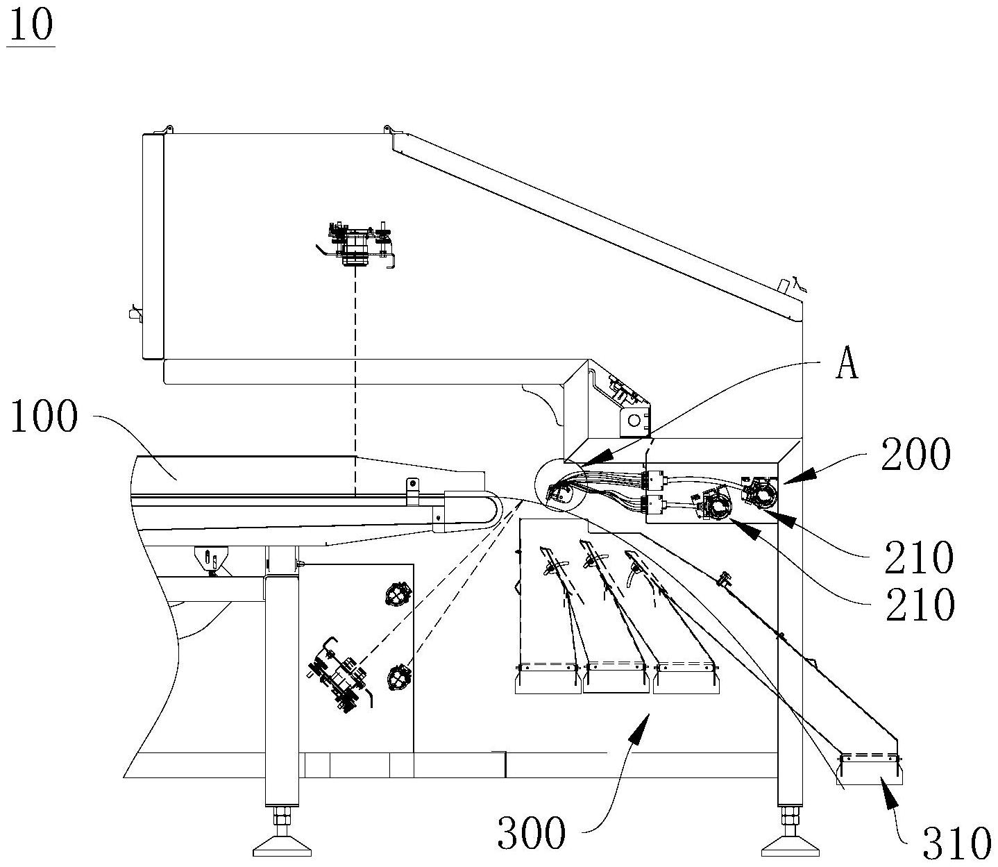 本实用新型提供了一种分选机及分选系统,涉及分选技术领域。该分选机包括用于输送物品的输送主体和分选组件。分选组件包括第一吹嘴组件和至少两个第一气压装置。第一气压装置包括多个可开闭的第一支气路。第一吹嘴组件上设有多个第一吹气口和多个第二吹气口,用于向物品吹气。至少一个第一气压装置的多个第一支气路分别接入多个第一吹气口,用于向第一吹气口输送第一预设气压的气流。至少一个第一气压装置的多个第一支气路分别接入多个第二吹气口,用于向第二吹气口输送第二预设气压的气流。本实用新型提供的分选系统采用了上述的分选机。本实用新型提供的分选机和分选系统可以改善为了实现多级分类造成的占用空间大、成本高以及效率低的问题。