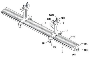 本实用新型公开了一种复合避雷器外套清理工装,涉及避雷器技术领域。本实用新型包括导轨、调节板、支撑板和折纹防护罩,导轨的内腔中转动连接有螺杆,螺杆的外周侧对称式活动连接有两个滑块,且两个滑块上端皆固定有调节板,每个调节板的上端面皆固定有支撑板,凹槽内插接有斜向且相互对称的两个支撑杆,支撑杆的内部转动连接有滑轮,导轨上方盖设有折纹防护罩。本实用新型通过设置导轨、滑块、调节板、支撑板、支撑杆、滑轮,解决了两个工装无法保证同步移动支撑,以及结构小巧的工装在放置避雷器时容易重心不稳而倾倒和工装无法对多尺寸避雷器支撑并保持稳定转动功能的问题。