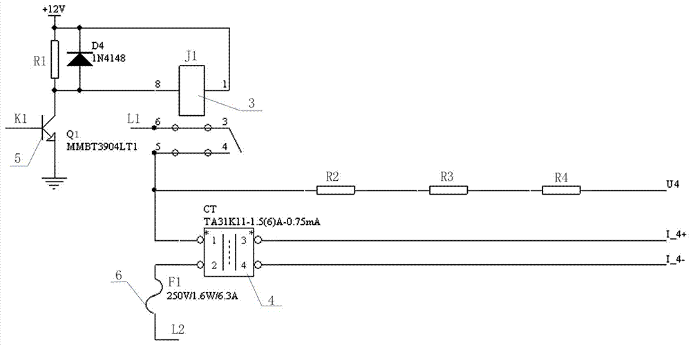 本实用新型的电源输出控制电路,包括计量电路和电源输出控制电路,特征在于:电源输出控制电路由继电器J1、交流互感器CT和三极管Q1组成,继电器J1的线圈与三极管Q1串联后接于控制电源的两端;电源输入端L1接于继电器J1常开点的一端,电源输出端L2与交流互感器CT的输入端串联后接于相应常开点的另一端。本实用新型的电源输出控制电路,计量电路通过对经过继电器常开点后的电压检测,可有效地检测出电源线是否出现了“无法断开”的情形,计量电路通过对电流互感器输出信号的检测,可有效地检测出电源线是否出现了“无法导通”的情形,保证了供电电源线的安全、稳定运行。