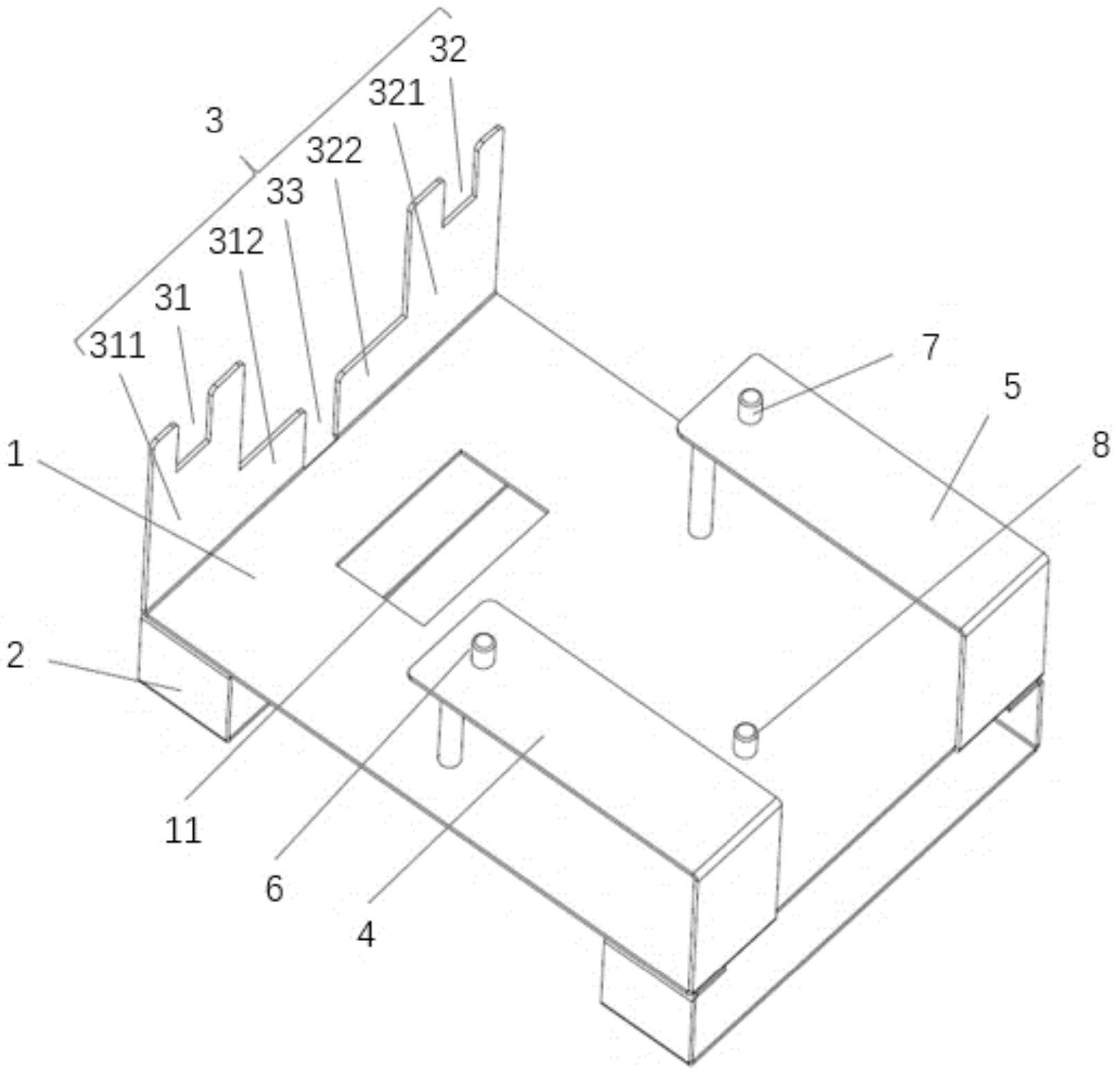 本实用新型涉及互感器固定装置,具体涉及一种用于固定间隔出线柜的互感器固定装置,用于解决现有固定间隔出线柜由于柜体内可操作空间小,无法在安装好铜排以后再固定互感器,导致后续调整时需拆卸后重新定位,浪费大量工时的不足之处。该用于固定间隔出线柜的互感器固定装置包括安装板、底座、第一限位装置、第二限位装置、第三限位装置和定位端板,其中第一限位装置、第二限位装置和第三限位装置分别用于固定A相互感器及其铜排、C相互感器及其铜排、B相互感器及其铜排;本实用新型可适用于不同厂家250系列的互感器,具有体积小,结构简单,零件少,通用性强的特点。