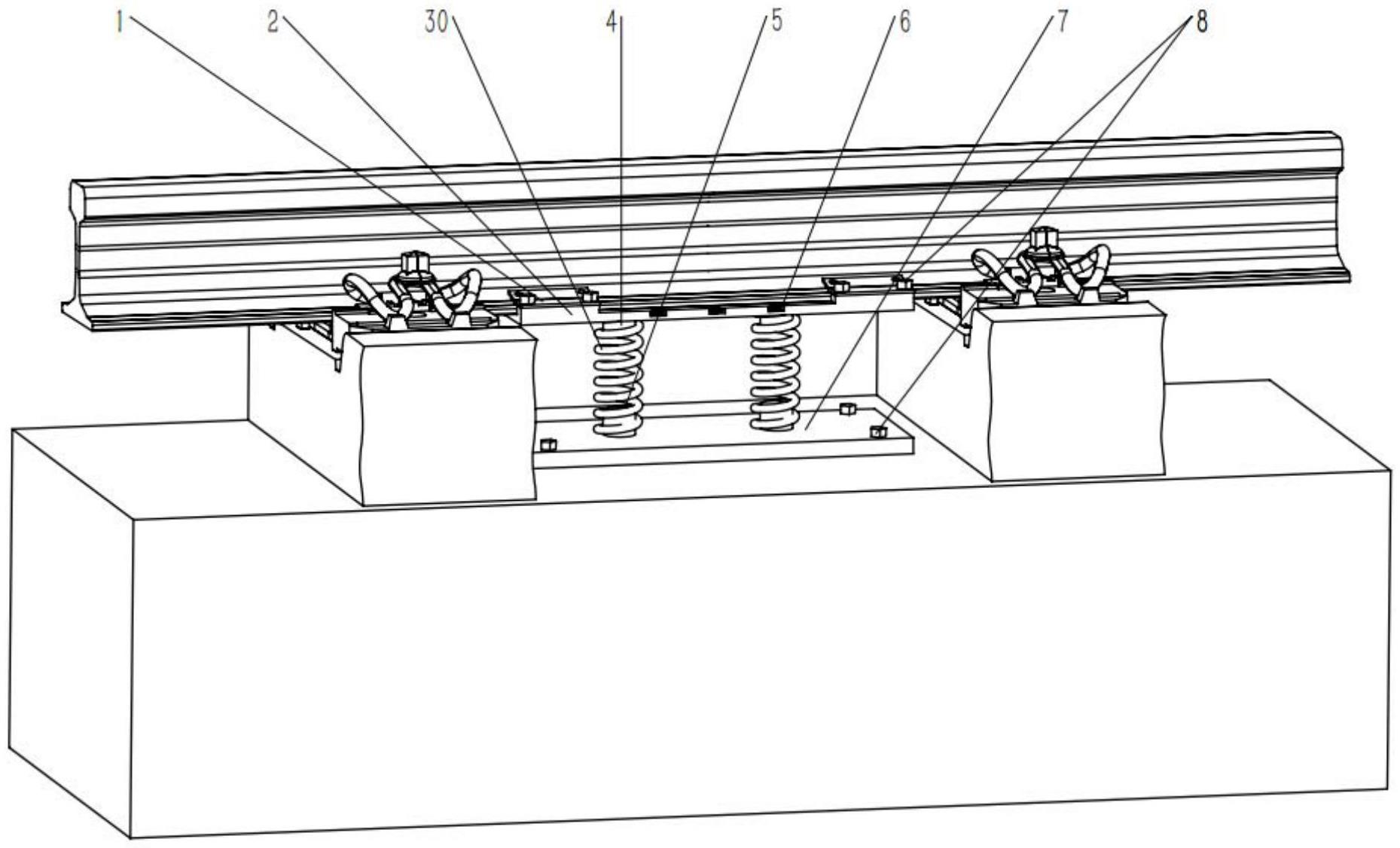 本实用新型涉及一种基于阻尼合金的轨道交通减振降噪装置,该装置包括下紧固板,所述下紧固板设置在钢轨上,在所述下紧固板上,或在所述下紧固板与轨道道床之间设置有至少一件弹簧型阻尼合金减振件。弹簧型阻尼合金减振件可以选择为不同结构,这些不同结构的弹簧型阻尼合金减振件可以采用同样的样式设置多个,也可以选择不同的样式组合使用。与现有技术相比,本实用新型耗能效率高,在微小应变时,阻尼合金就能发挥良好阻尼性能,且能有效拓宽减振频带;适用范围广;具有良好力学性能,可作为结构件使用;便于养护等优点。