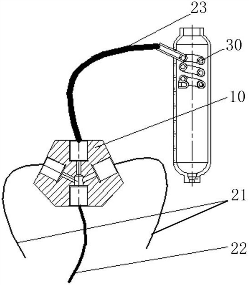 本实用新型提供的水质重金属在线监测仪的阻尼进样装置,包括:混合进样器、阻尼管、载气管和缓冲管;混合进样器设有试剂口、载气口、混合液出口;试剂口为多个,每个试剂口均连接有一个阻尼管,载气口与载气管连接,混合液出口与缓冲管连接。本实用新型提供的水质重金属在线监测仪的阻尼进样装置,能有效减少试剂混合后剧烈反应对试剂进样流量的影响。