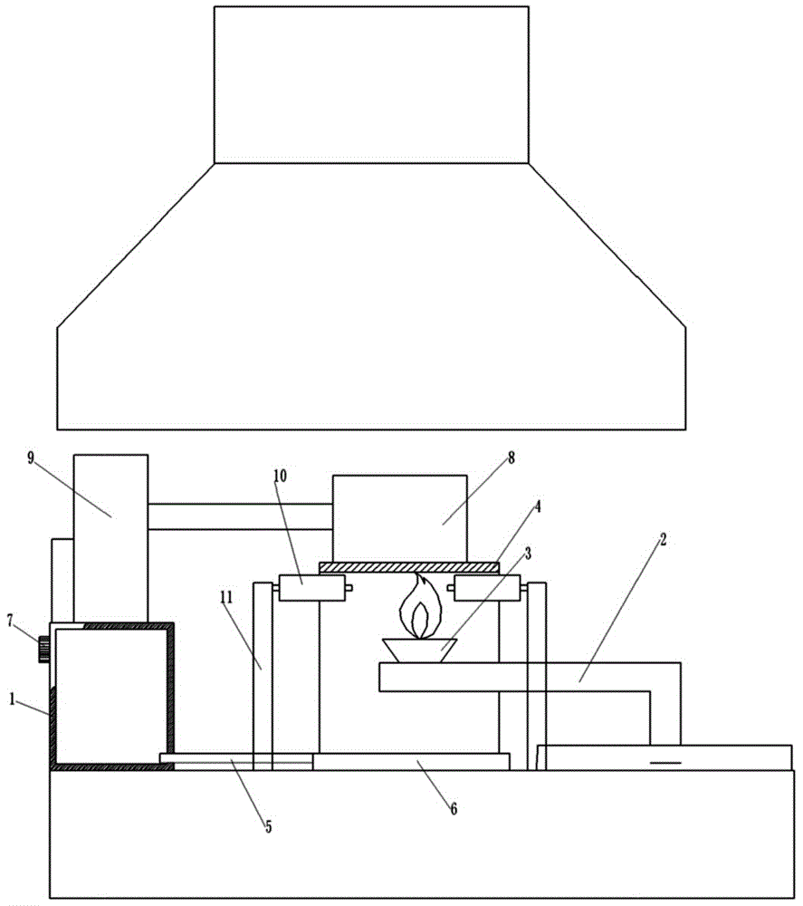 本实用新型提供了室内高效热雾化装置,包括储液罐、与所述储液罐连接的热雾化机构,所述热雾化机构含有油灯支架、设于所述油灯支架的油灯、圆形圈、输液管、液槽,所述输液管的一端与所述储液罐的底部连接,有益效果:本装置雾化彻底、雾化量大、雾化时间长,出雾量大,满足大范围的病区的雾化消杀。