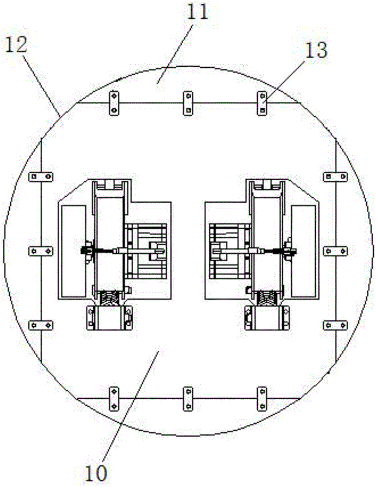 本实用新型涉及机械装置技术领域,特别涉及一种底盘结构,包括:底盘本体,底盘本体的四边均设置拼接板,拼接板与底盘本体可拆卸连接。本实用新型实施例提供的一种底盘结构,通过在底盘本体的四边设置拼接板,将拼接板与底盘本体可拆卸连接,使底盘能够随时通过连接拼接板实现形状的变化,提高了底盘的可复用性。