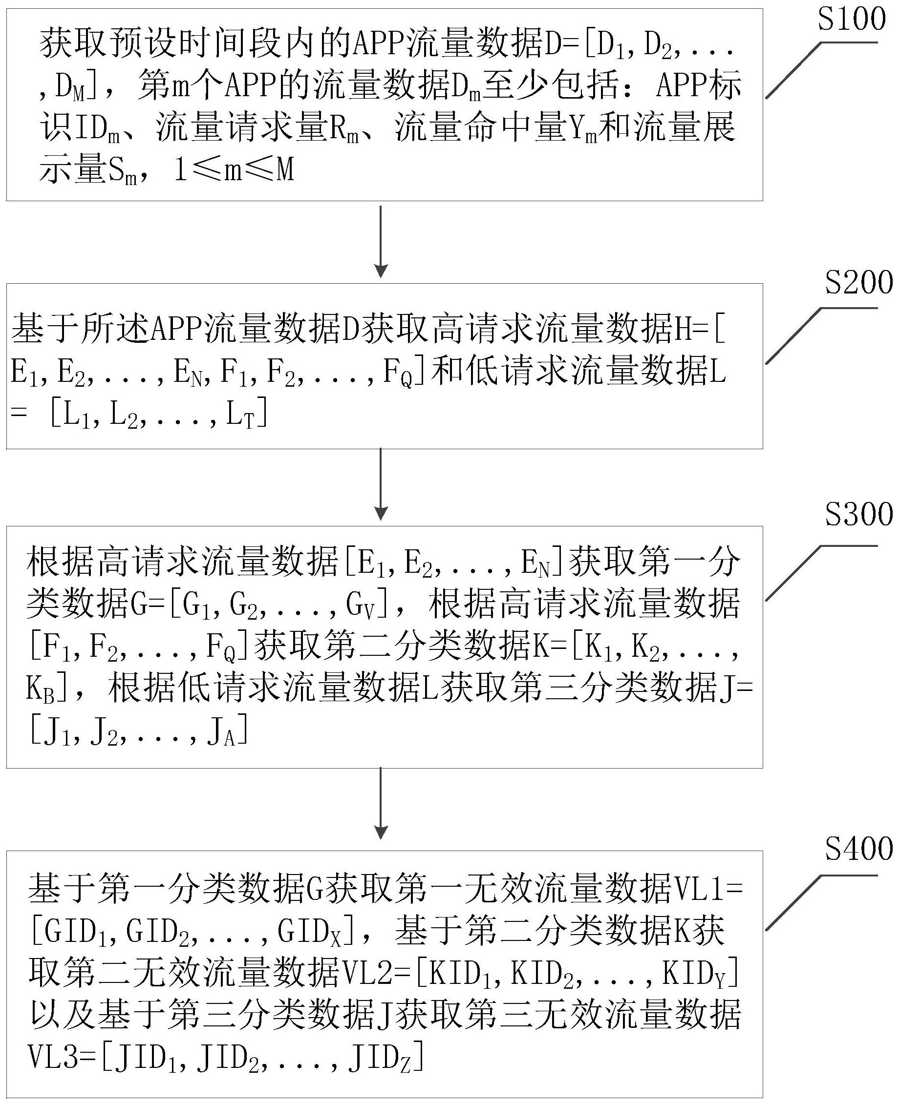 本申请提供了一种流量筛选方法和系统,其通过获取预设时间段内的目标APP流量请求相关数据,并根据APP的流量请求量进行第一次数据分层,得到了具有高请求量的APP数据和具有低请求量的APP数据,之后对具有高请求量的APP进行基于命中量或命中率的第二次数据分层以及基于展示率的第三次数据分层,从中筛选出命中量低且展示率低的APP,以便筛选出流量造假的APP,对具有低请求量的APP进行基于命中率的第二次数据分层以及基于展示率的第三次数据分层,从中筛选出命中率低且展示率也低的APP,以便筛选出无积极作用的APP或者造假的终端用户。通过本申请的流量筛选方法,一方面可以最大可能地保留可用流量池,另一方面可以获取流量市场中真实的APP流量请求。