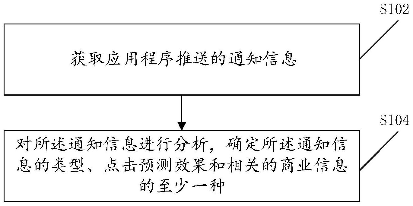 本申请公开了一种通知信息的处理方法、装置、设备和存储介质。该方法包括:获取应用程序推送的通知信息;对所述通知信息进行分析,确定所述通知信息的类型、点击预测效果和相关的商业信息的至少一种。获取了上述的内容之后,可以把上述的内容提供给数据需要的企业,单位等,为各大企业的推送运营团队、用研部门、市场部门提供数据支撑。提高了通知信息的再利用价值,有助于网络的管理者、商家、企业、销售推广团队等来了解网络中的各个商家应用程序发送的通知信息。有助于实时掌握分析应用程序在全国各地发送的通知内容,从而可以为用户提供更有价值的通知信息数据处理分析结果。