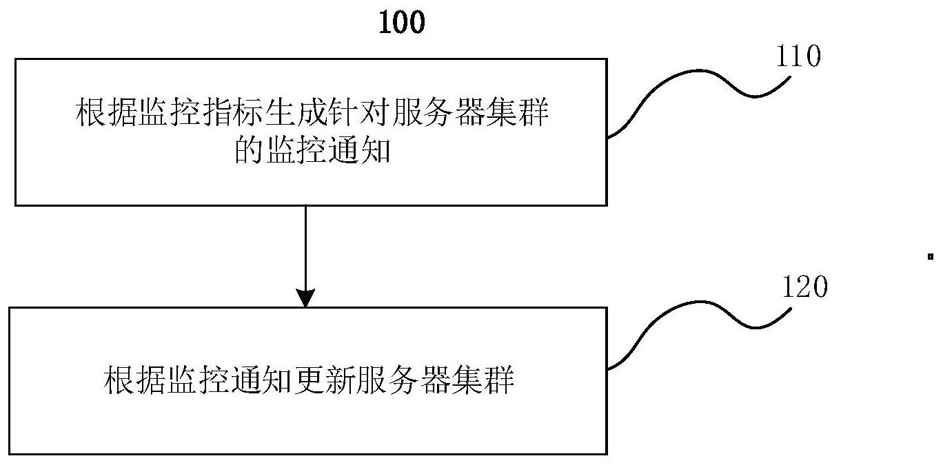 本公开提供了一种服务器集群更新方法,包括:根据监控指标生成针对服务器集群的监控通知;根据监控通知更新服务器集群。本公开能够根据实时情况在无感知的情况下减少或者增加线上服务,预防服务器因突发流量暴涨而造成服务器瘫痪,服务器宕机造成的数据损失的问题,以及提高服务器集群的资源利用率,降低成本。
