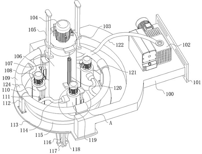 本发明公开了一种房车抽拉式黑水箱自动排污清洗装置,涉及清洗装置技术领域,其包括第一支架,以及盖体,盖体上具有一收纳筒,在收纳筒内设有刮料机构;多个桶状结构,多个桶状结构安装在盖体上且呈圆周分布在滑杆的外侧,多个桶状结构具有抽污口和排污口,多个桶状结构相互独立的与盖体滑动设置实现抽污口位于黑水箱本体内的不同位置,在每个桶状机构内具有负压机构,负压机构用于使污水自抽污口输送至排污口,通过将刮料机构设置为收纳或展开式,在排污完毕后能够保持刮料机构的充分清洁,避免长时间使用后刮料机构因腐蚀而使用寿命较短的缺陷,同时在排污时,能够对不同水位点进行同时抽取,因此在粘稠物未充分沉积时即可完成对污物的清理。