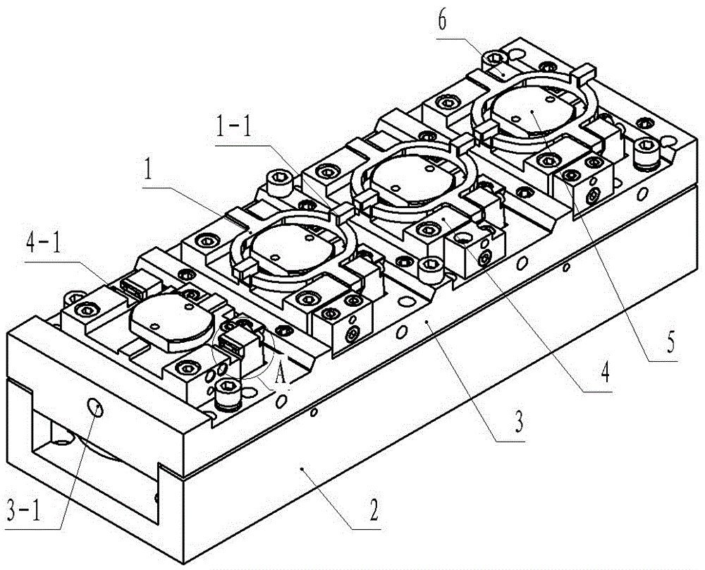本发明公开了一种十字滑环的磨削方法,使用一种十字滑环磨夹具,包括以下步骤:A、安装夹具;B、将十字滑环套装在定位销上,使第二凸起放置在限位缺口上;启动驱动气缸进气,使杆体带动压块绕铰连轴转动,体通过压块将第二凸起的侧面固定在限位缺口上;C、启动床电源,使用砂轮对第一凸起的两个侧面分别进行磨削加工;D、启动驱动气缸出气,摆杆一端和杆体在复位弹簧作用下绕铰连轴旋转,杆体带动压块松开第二凸起侧面,卸下十字滑环即完成对第一凸起两个侧面的磨削加工。较之现有技术,采用本发明可提高十字滑环的第一凸起两个侧面加工的精度和生产效率。