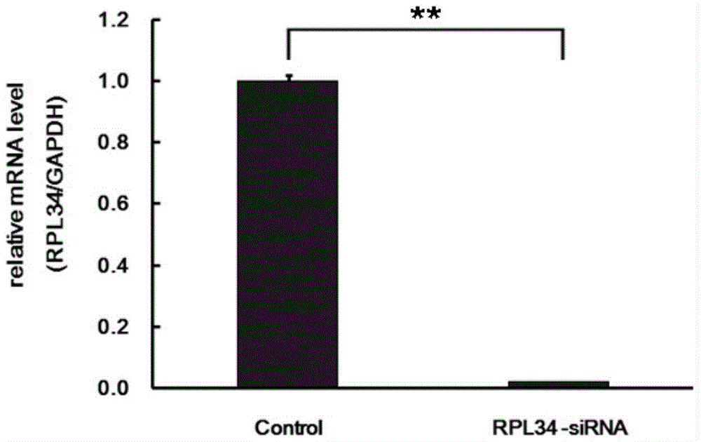 本发明公开了人RPL34基因的用途及其相关药物。本发明公开了人RPL34基因在肿瘤治疗、肿瘤诊断及药物制备中的用途。本发明还进一步构建了人RPL34基因小分子干扰RNA、人RPL34基因干扰核酸构建体、人RPL34基因干扰慢病毒并公开了它们的用途。本发明提供的siRNA或者包含该siRNA序列的核酸构建体、慢病毒能够特异性抑制人RPL34基因的表达,尤其是慢病毒,能够高效侵染靶细胞,高效率地抑制靶细胞中RPL34基因的表达,进而抑制肿瘤细胞的生长,促进肿瘤细胞凋亡,在肿瘤治疗中具有重要意义。