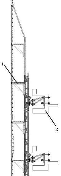 本实用新型提出了一种爬架用支座悬挑加固装置,包括固定件,所述固定件用于安装在安装建筑上,所述固定件包括加高件和穿墙螺杆,所述加高件通过穿墙螺杆固定在固定件上,还包括加固装置和悬挑梁,所述固定件上设置有突出部,所述加固装置横向连接在突出部上,所述悬挑梁与加固装置平行设置,所述加高件位于加固装置与悬挑梁之间并通过穿墙螺杆分别固定在加高件与加固装置上,本申请采用成品加高件配合悬挑梁挑高方式,将拉结点固定在结构板面上,支座附着在悬挑梁上,从而保证第三道支座的附着,大大提高施工效率和架体安全性能。