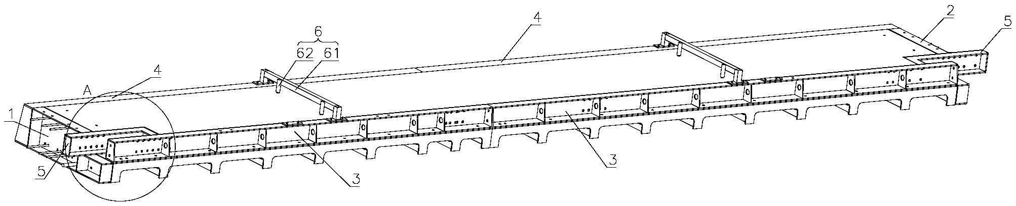 本实用新型提供一种预制梁钢木混合模具,包括呈对称布置的头部挡板和尾部挡板,所述头部挡板与所述尾部挡板之间固定连接有呈对称布置的若干第一侧部挡板和若干第二侧部挡板;所述头部挡板和所述尾部挡板均设置有连接所述第一侧部挡板且呈L形的端部挡板;头部挡板、尾部挡板、端部挡板、第一侧部挡板和第二侧部挡板通过紧固件固定连接,形成横梁的铸造模具,通过设置第一侧部挡板和第二侧部挡板的数量调节铸梁的长度,使本实用新型适用性更广,成本更低,而且本实用新型实现可拆卸连接,提高了模具拆装的工作效率。