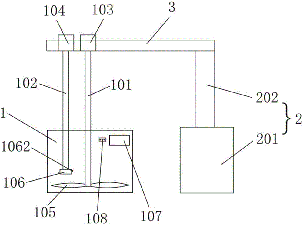 本实用新型涉及油墨生产的技术领域,公开了一种油墨的搅拌装置,通过设置第一搅拌轴和第二搅拌轴两根搅拌轴对缸体中的物料进行充分搅拌,第一搅拌轴上设有搅拌桨叶,搅拌桨叶用于旋转搅拌将物料充分混合均匀,在第二搅拌轴上设有搅拌头,搅拌头旋转用于将结块的物料打散,便于物料混合,控制元件用于控制第一电机和第二电机的转速,可以根据物料的需求控制电机的转速,实现不同速率的搅拌以达到物料的不同参数变化,保证油墨的质量。