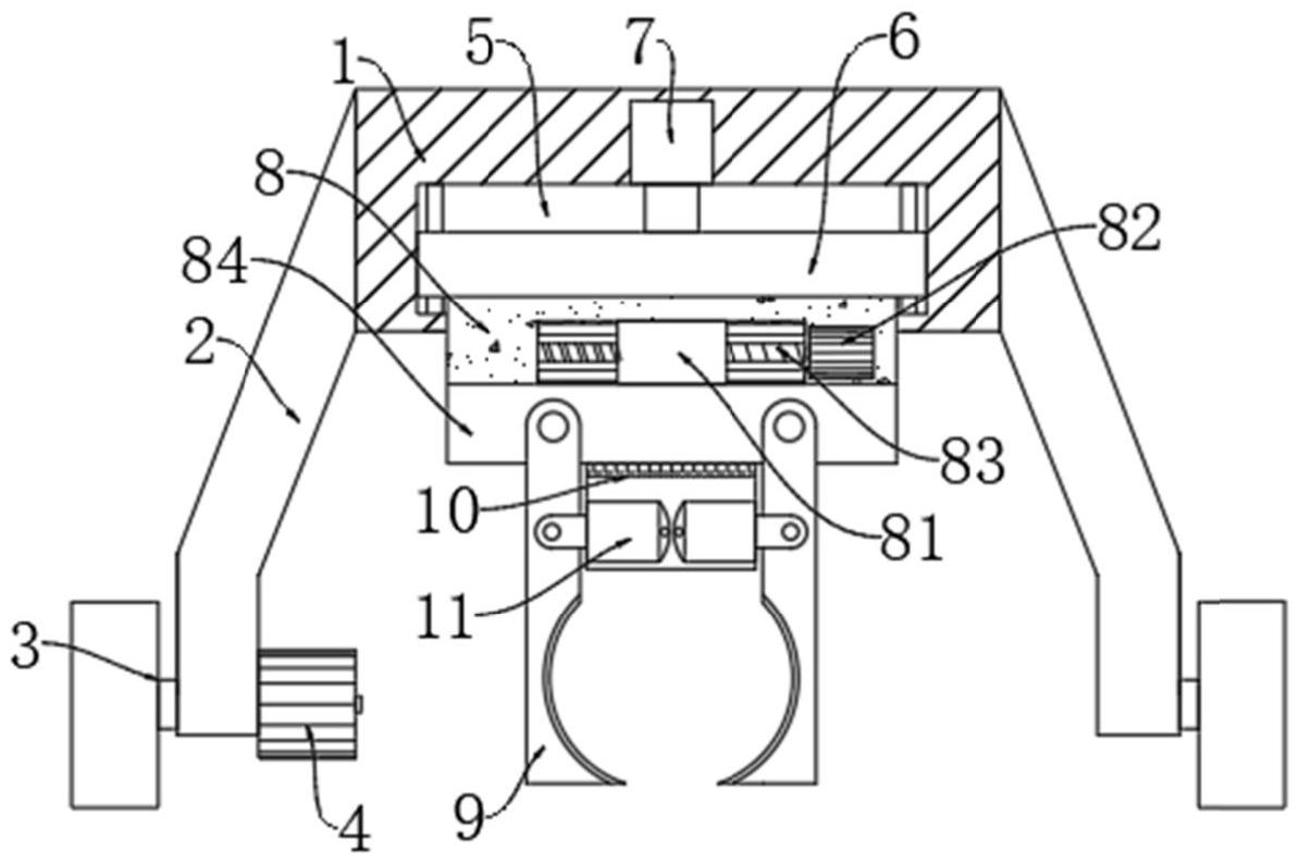 本实用新型公开了一种天然气长输管道布管装置,本实用新型涉及管道施工技术领域。该天然气长输管道布管装置,包括固定架,所述固定架的外表面等距固定连接有支撑架,支撑架的末端转动连接有滚轮。本实用新型通过安装支撑架、滚轮和夹板等能够快速对管道进行夹持固定以及对管道进行移动,避免了传动多台吊机或者人工搬运才能对管道进行移动的麻烦,通过设置限位腔、限位板和调节块等,当夹板将管道固定后,通过纵向电动伸缩杆的伸缩可以对管道的高度进行调整,通过螺纹棒的转动可以对管道的横向位置进行调整,能够使夹持的管道管口能够快速对其,便于对两个管道的连接处进行固定焊接,加强了实用性。